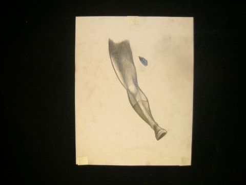 This is a hand drawn production sketch of one of Batman's legs from the 2005 Christopher Nolan film 'Batman Begins.' Sketch is done on wax paper and affixed to a construction paper backing. (measures approx. 11" x 14")
