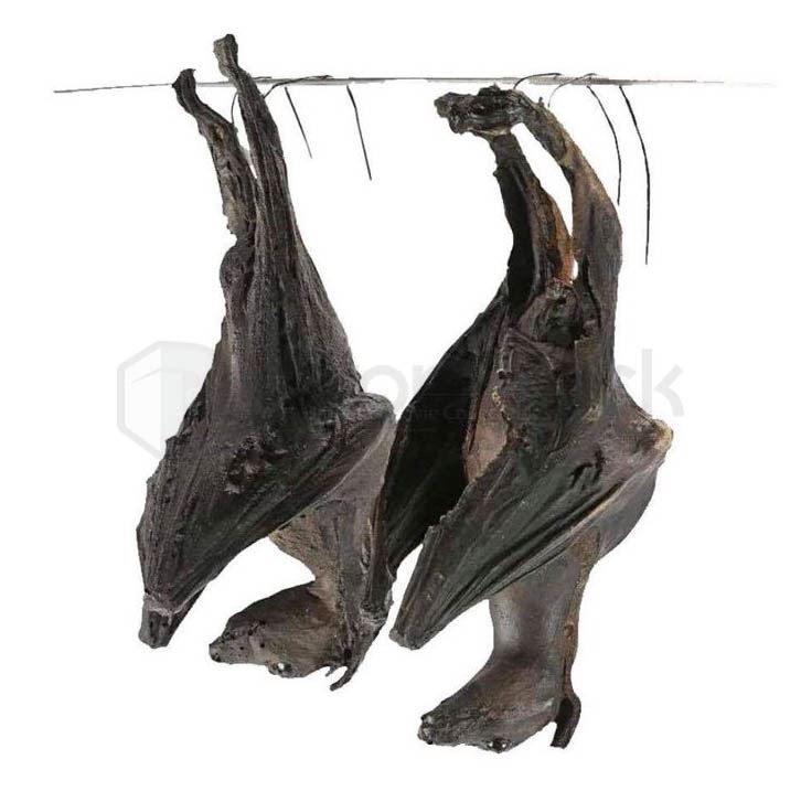 Set of two hanging bats used in the production of the Christopher Nolan superhero series Batman Begins. After training with his mentor, Batman begins his fight to free crime-ridden Gotham City from corruption. This set consists of the urethane rubber bats that were used in the cave scene when a young Bruce Wayne falls through a hole in the ground. This set remains in excellent, production used condition.