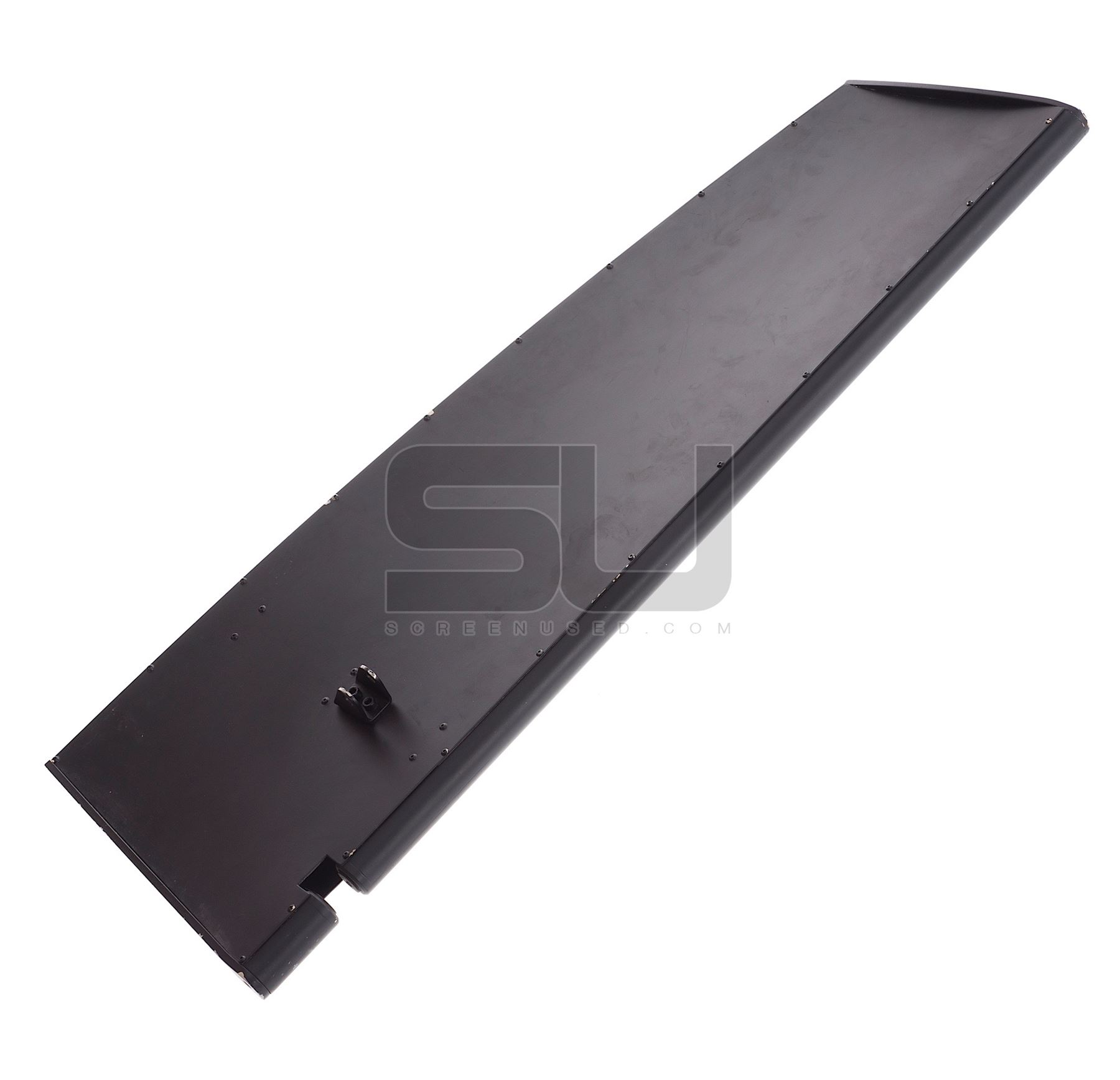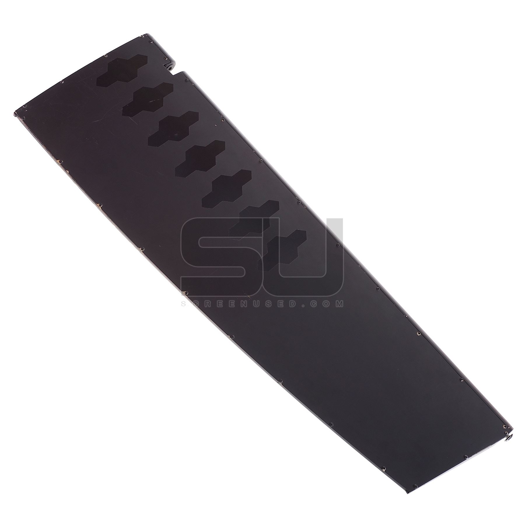 This spoiler was created by the production for use on the Tumbler, Batman's car. The piece measures approximately 37.5" x 12.5" x 1.5". Wear from use is present.