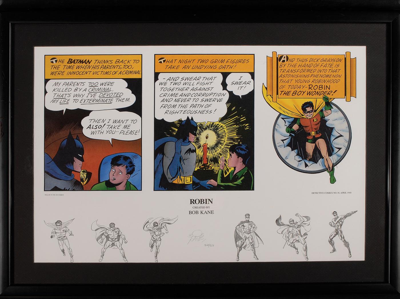 Color limited edition 24 x 16 lithograph entitled ‘Origins of Robin,’ numbered #261/500, signed in pencil. In very fine condition.