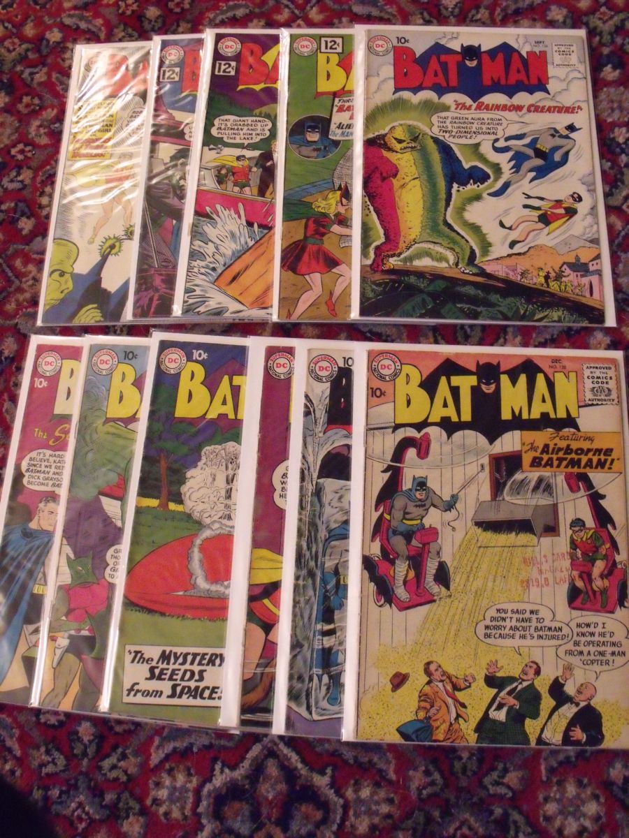 Batman #120-121, 123-124, 130-131, 134, 144, 146, 148, 153. 11 issues total. Average condition ranges from G/VG to FN+