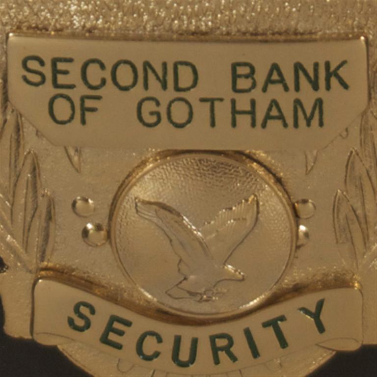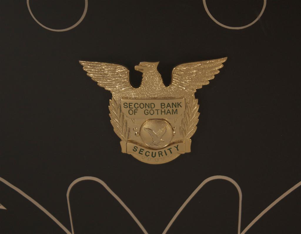 Batman Forever - A beautifully framed screen used production made gold "Bank of Gotham Security" badge.