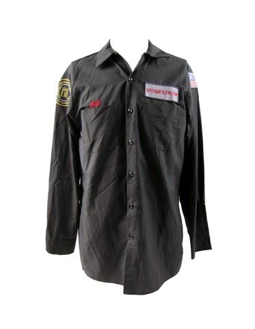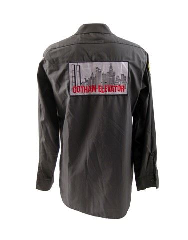 Batman Forever 1995 - Gotham Elevator operator jacket. Grey, long sleeve button front with multiple patches.