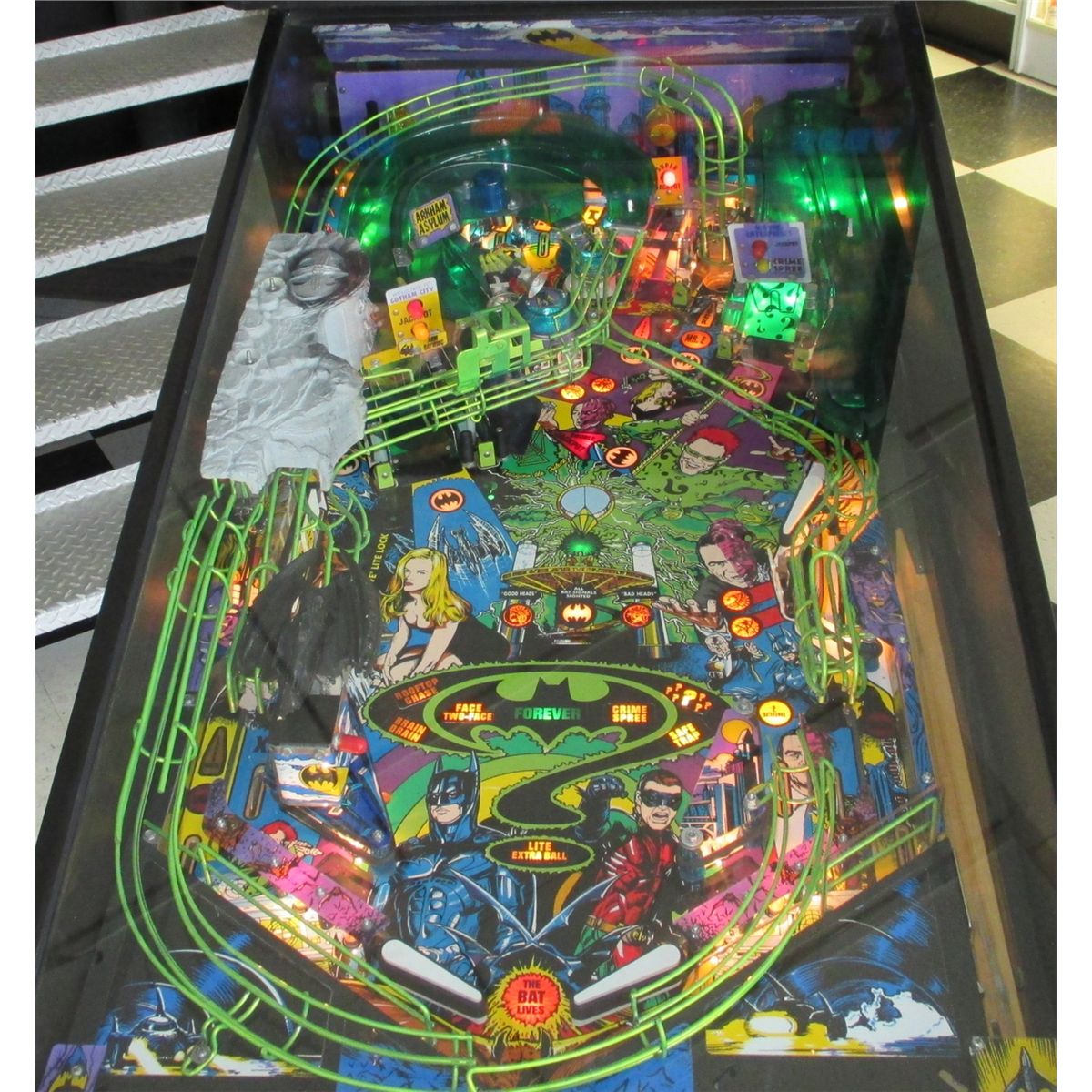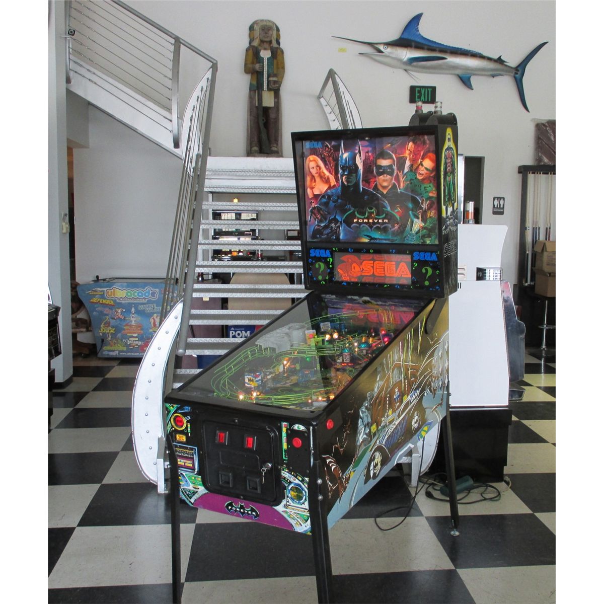 With Sega's exclusive team play, Batman and Robin can pair up against Two-Face and The Riddler! Display effects so stunning, you'll swear they were done on the Bat-Computer! Your crime fighting reflexes will have to be razor sharp to get to the top of the tower! Make the wrong move and it's curtains for the Dark Knight! This is game is in excellent condition. This pin has been shopped with the playfield cleaned and polished. Worn rubber and burnt bulbs have been replaced. Also, a trained pinball technician has checked all functions for proper operation.