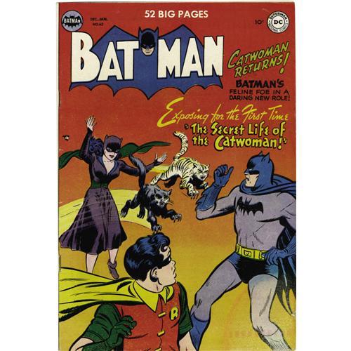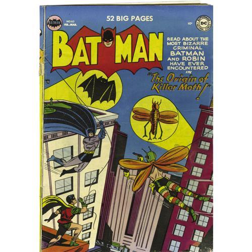 <B>Batman Group (DC, 1950-54) Condition: Average VG-.</B></I> Issues #60, 61, 62, 63, 66, 67, 68, and 81 are included here -- if you're scoring at home, that's two Joker stories, two Two-Face cover stories, the origin of Catwoman, the origin of Batplane II, and more! Note that all of these copies have an oil stain through the lower right-hand corner, though it's not always visible on the front covers. All average VG- except for #67 (FR), which is missing half of the back cover. Approximate Overstreet value for group = $1,100. <I>From the Collection of Harold Curtis.</B></I>