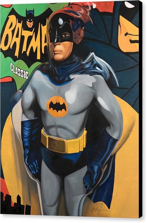 Batman canvas print by Karl Melton. Dimensions are 18 inches by 24 inches. Your canvas print will be delivered to you ready to hang with pre-attached hanging wire, mounting hooks, and nails.
