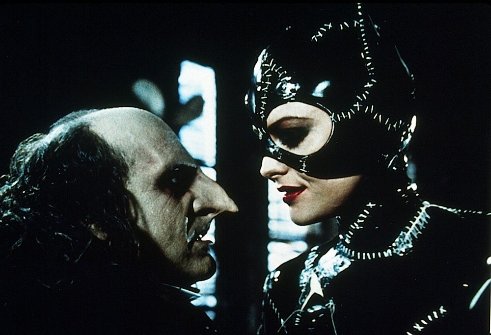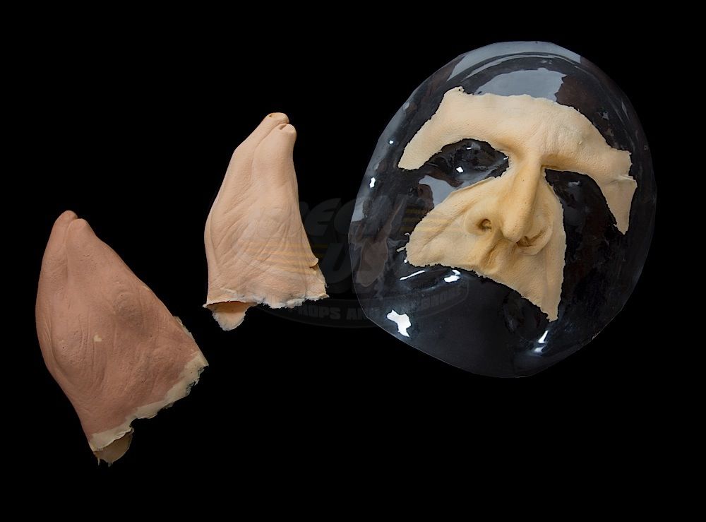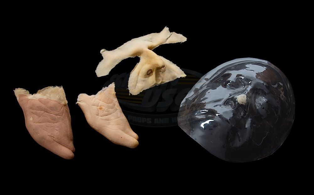 (Warner Bros. Pictures, 1992) This is a set of unused face and hand appliances that were custom-made by the production for use by Danny DeVito as "Penguin / Oswald Cobblepot". The set includes the nose and brow section of the face and attached fingers from each hand, all in good unused condition, from the personal collection of the film's key makeup artist, Ve Neill. The face appliance rests on a clear molded plastic pull of Danny DeVito's life mask.
