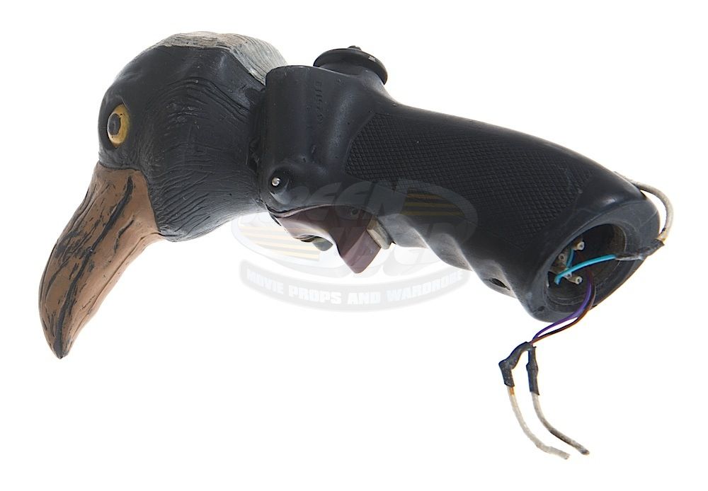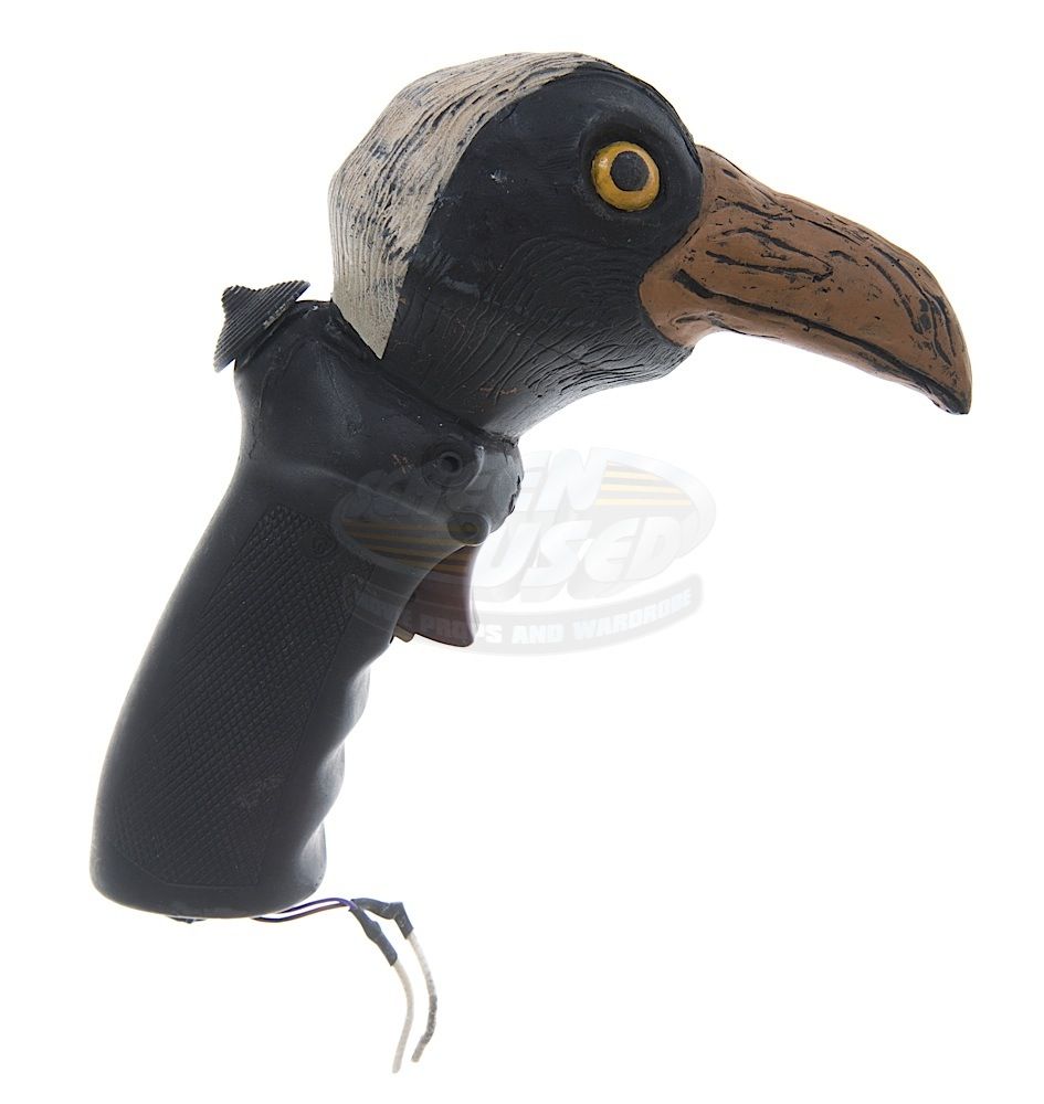 (Warner Bros. Pictures, 1992) This prop penguin trigger handle was custom-made by the production for use by Danny DeVito as "Penguin". The prop is constructed of a plastic handle with trigger and a custom-made penguin head attached to the top. This is an interesting prop made in the penguin theme, but it is not seen in the final cut of the film. Measures 8" x 5" x 2.5".