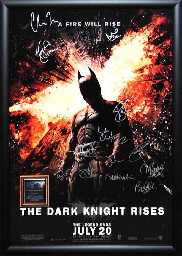 "The Dark Knight Rises" Cast signed movie poster by Christian Bale, Tom Hardy, Anne Hathaway, Joseph Gordon-Levitt, Marion Cotilliard, Gary Oldman, Juno Temple, Morgan Freeman, Michael Caine, Matthew Modine, Nestor Carbonell, Adam Rodriguez, Brett Cullen, Tom Conti and director Christopher Nolan. This item comes with a Certificate of Authenticity from a third party authenticator. This Certification of Authenticity does not imply that the item will be certified by any other rival authentication companies. The accompanied certification is the only certification the auction company can confirm. These items are being sold as collectable pieces and there is no guarantee that this item can be resold on any online marketplace. Each of these companies has their own policies and politics.