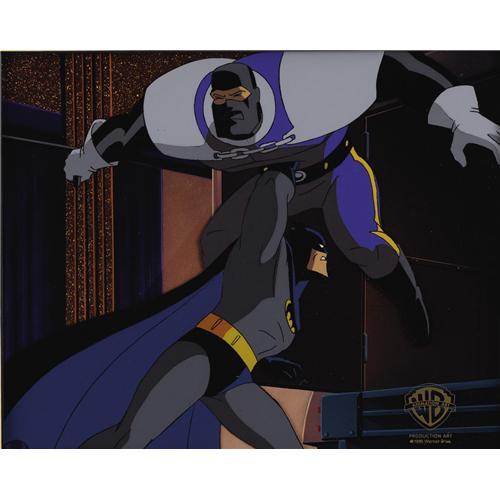 <B>"Batman: The Animated Series" Batman Production Cel (Warner Bros., 1992).</B></I> Batman takes center stage in this cel set-up, which consists of one cel, and a photocopy of the original production background, from the episode "Lock-Up." This hand-painted production cel has an image area of 11.5" x 8" and is in Excellent condition. Includes a certificate of authenticity. <BR><BR><B>Important notice:</B> Heritage usually auctions material at the rate of 200-250 lots per hour. On some occasions eBay Live bid software or the Internet may not be able to keep up with the pace of the auction. We recommend placing a realistic absentee bid now as insurance to avoid disappointment. Occasionally the auctioneer may eliminate or reject an eBay Live bid, and the auctioneer may also reopen a lot after the close of the eBay live bidding (usually because we missed an audience bid), and may reject your bid even if it shows you as the winning bidder. By bidding via eBay Live, you agree that Heritage may award the lot to another bidder at its sole discretion under the circumstances described above or any other reasonable circumstances. Since eBay bids are not shown to us until we open the lot on the floor, we treat those bids just like floor bids. In most cases the floor responds before the eBay bid is presented to us, due to Internet lag time, so for consistency we have made it a policy that floor bids are always considered first over tie eBay live bids. Also please note that all Heritage lots purchased through eBay Live carry a 22.5% Buyer's Premium. Please make sure you read the Terms and Conditions before you bid. This lot is being auctioned in conjunction with a live floor auction by Heritage Auction Galleries. All final auction and invoice information will be supplied by Heritage Auction Galleries, and all other information should be considered preliminary. Lot:41001 <BR><BR><B>Winning Notification and Billing:</B> After the FINAL session in this auction is complete, Heritage will send e-mail and snail mail invoices. This process normally takes several days. All final auction and invoice information will be supplied by Heritage Auction Galleries, and all other information should be considered preliminary. <BR><BR>This auction will be conducted on a live auction floor and over the Internet through eBay Live. If you choose to place an absentee bid, please take a moment to <font color='#0000ff'><u><a href='http://pages.ebay.com/liveauctions/help/before/laabsentee.html'>learn how eBay Live absentee bidding works</a></u></font><font color='#000000'>