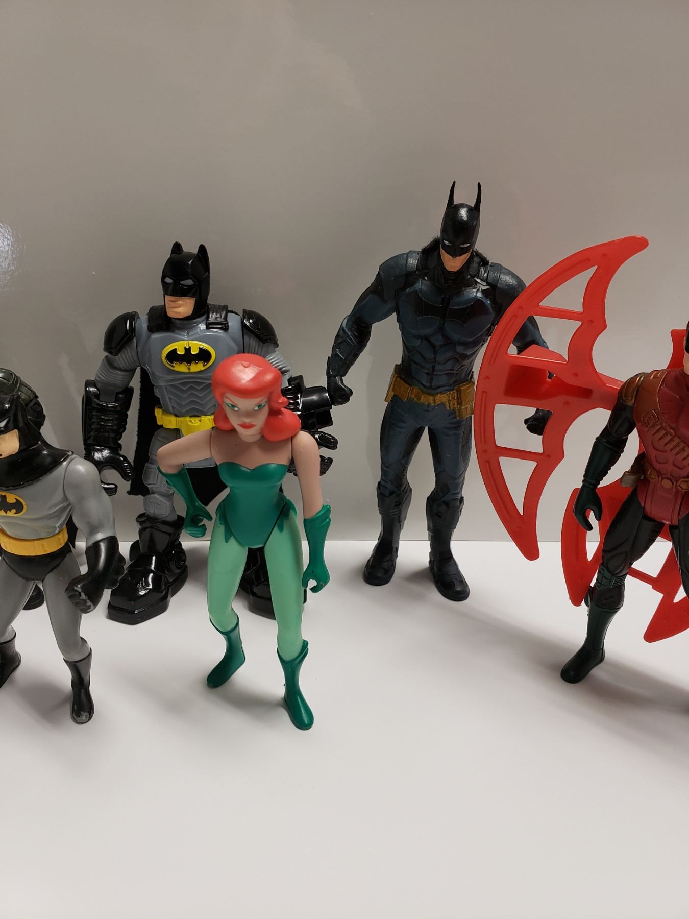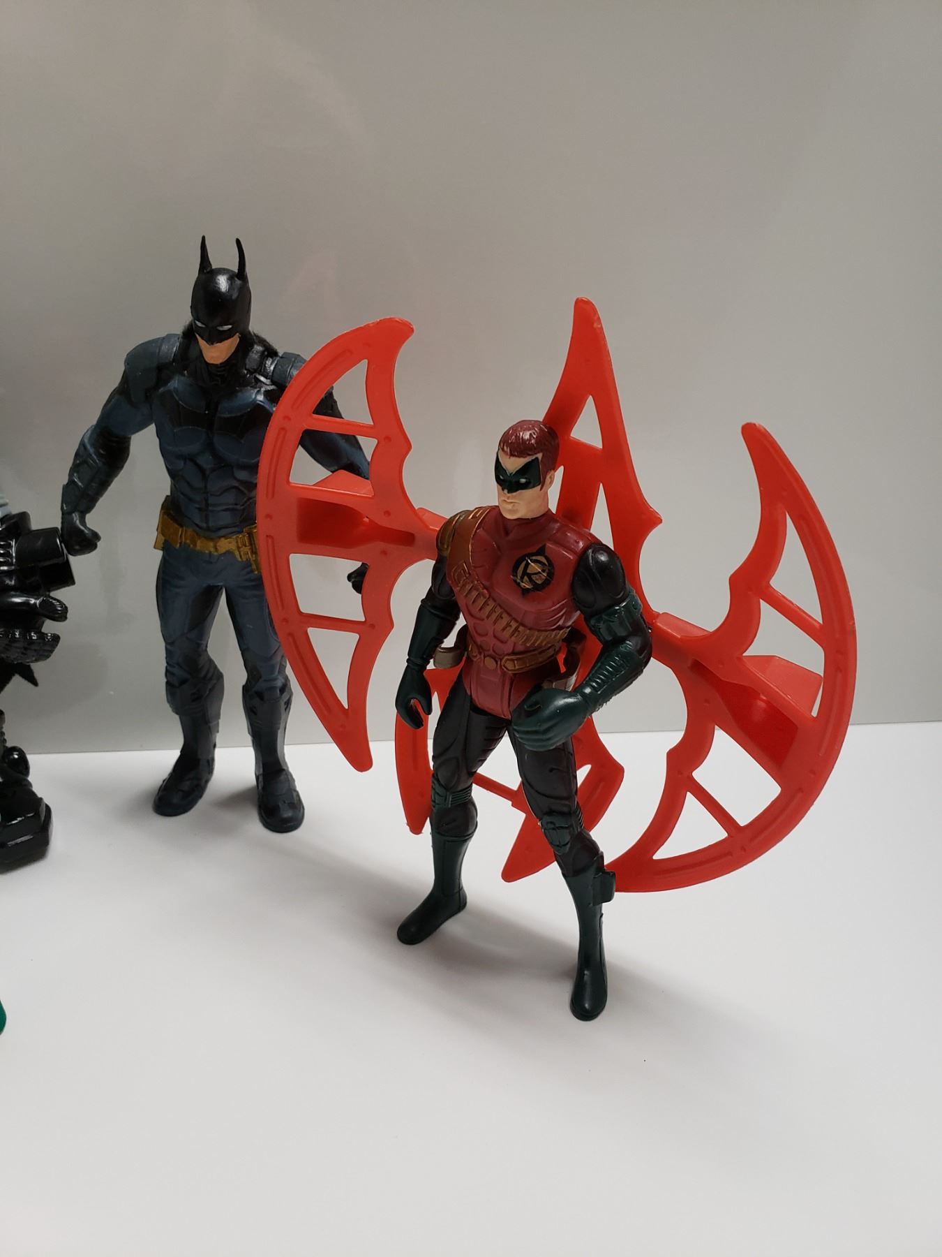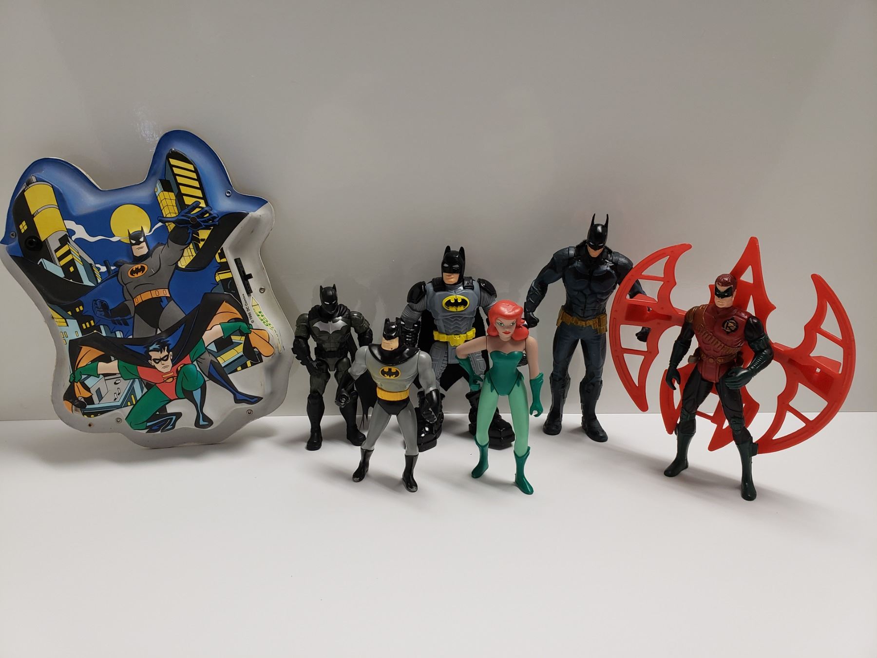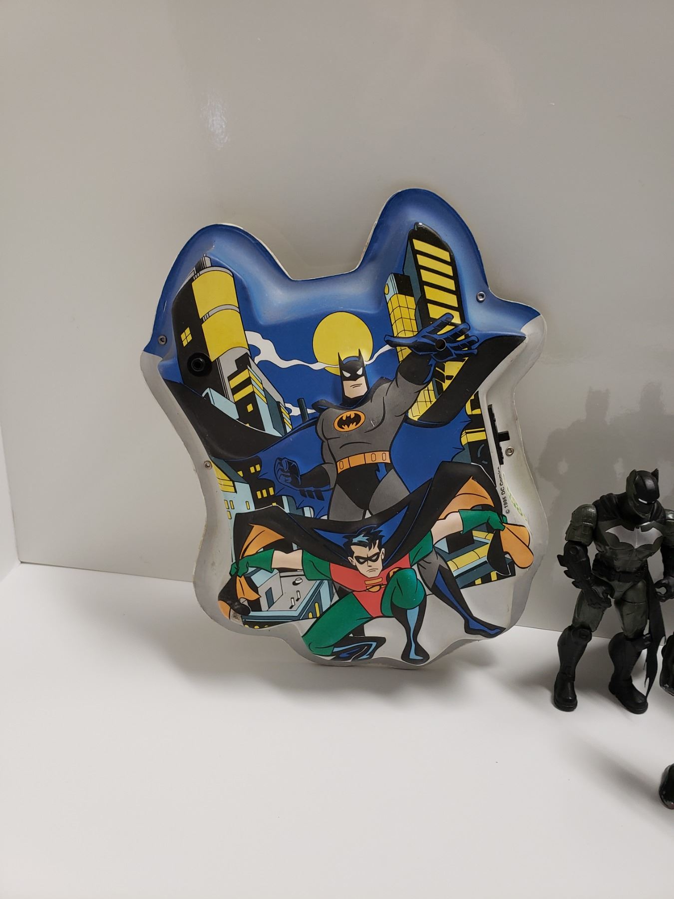 Retro to Modern Action Figures, Various Conditions. 1995 Batman Batcave Alrm System, Works, Put string on nib when tripped make alarm sound.