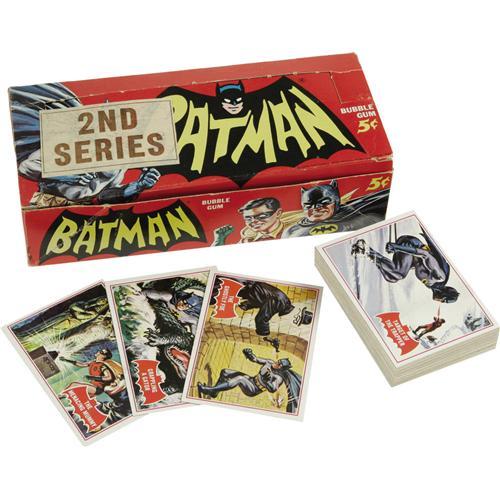 Includes cards 1A-44A, the entire second set. All feature wonderful Norman Saunders painted portraits of the Dynamic Duo and their colorful villains. The cards are all in Excellent condition. Also included is an original store display box, featuring the "2nd Series" sticker. It is in VG condition. <BR><BR><b>Shipping:</b> Small Collectibles (<a target="_blank" href="http://www.heritageauctions.com/common/shipping.php">view shipping information</a>)