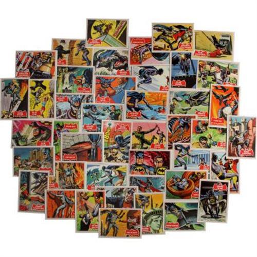 <B>Batman Trading Cards, Second Series Complete Set (Topps, 1966).</B></I> Here's a sweet set of all 44 "Red Bat" trading cards, featuring great painted portraits of the Dynamic Duo by Norman Saunders. The cards average NM 7 condition. <BR><BR><b>Shipping:</b> Miscellaneous Collectibles, Smal (<a target="_blank" href="http://www.heritageauctions.com/common/shipping.php">view shipping information</a>)