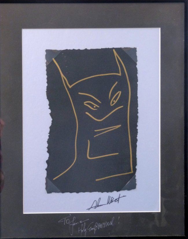Batman: a sketch by Adam West signed in the Margin and dedicated 'To Jane Holy Empowered!' on the mount, glazed & framed 13 x 10in. (33 x 25cm)