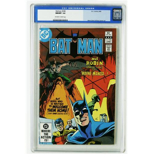 <B>Batman and Dark Knight CGC Group (DC, 1981-86).</B></I> All but one of these issues are CGC-certified 9.8, and all have white pages unless otherwise noted. Included here are <B>Batman</B></I> #341 (off-white to white pages; CGC census 3/06: 7 in 9.8, none higher), #343 (6 in 9.8, none higher), #348 (off-white to white pages; 3 in 9.8, none higher); #399 (CGC 9.6; 2 in 9.6, 3 higher), #402 (1989 Multi-Pack reprint; 3 in 9.8, none higher), and <B>Batman: The Dark Knight Returns</B></I> #3 (66 in 9.8, 2 higher). Overstreet 2006 NM- 9.2 value for group = $72.