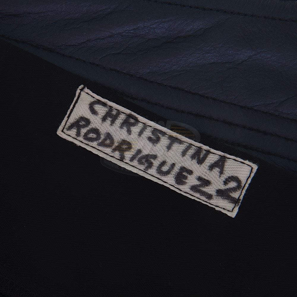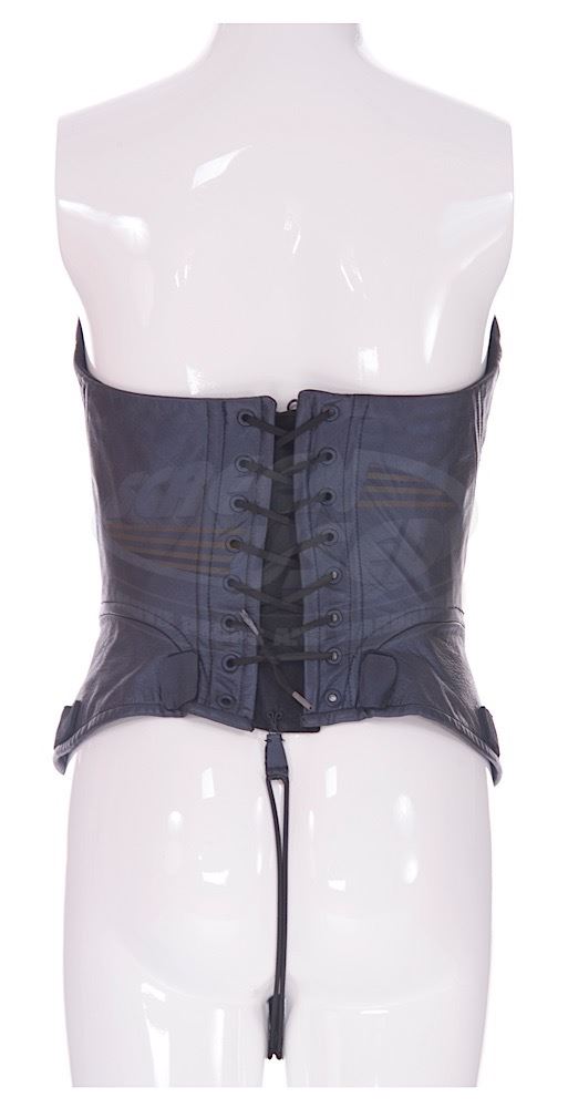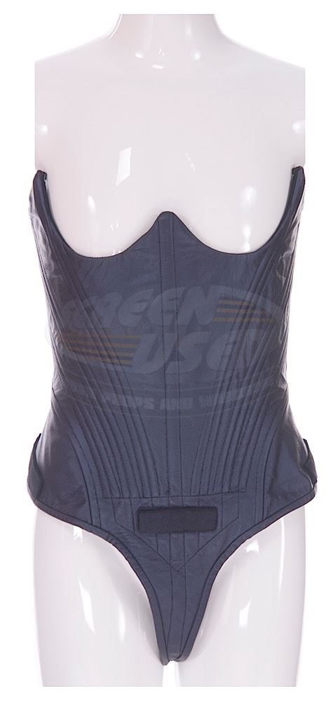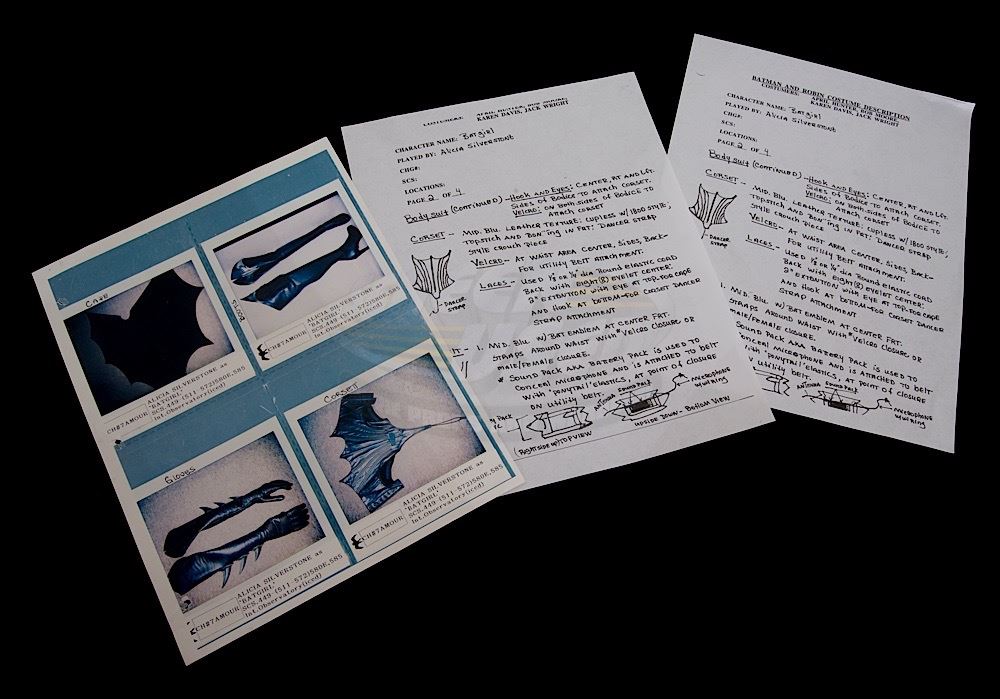 (Warner Bros. Pictures, 1997) This corset section of the Batgirl costume was custom-made by the production for use by Alicia Silverstone's stunt person (Christina Rodriguez) as "Batgirl". The costume piece has several sections of Velcro applied to hold the belt in place during filming. "Christina Rodriguez" is handwritten on the inside in marker. Included with the corset are a production used Batgirl costume description page that details the corset and other costume parts and a page from the costumer's book that features images of Batgirl costume parts, including the corset.