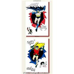 Batman and Robin Posters (DC, 1966). Extremely rare 1966 toothpaste premiums, these are the size of a standard one-sheet (27" x 41"), and are reminiscent  of the classic TV show. The Batman poster shows him running, with the words "POW" shaded with half-tone dots, and a small image of the Penguin at the bottom. The Robin poster is similar, but has the Joker on it. Both posters are in like-new condition, snow white backgrounds, with saturated colors.  Important notice: We expect to be auctioning lots at the rate of 200-250 per hour. Sometimes eBay Premier live bid software cannot keep up with that pace, so we strongly recommend that you place a realistic proxy bid now as insurance to avoid disappointment. Also please note that all Heritage/CAA lots purchased through eBay Premier carry a 20% Buyer's Premium.