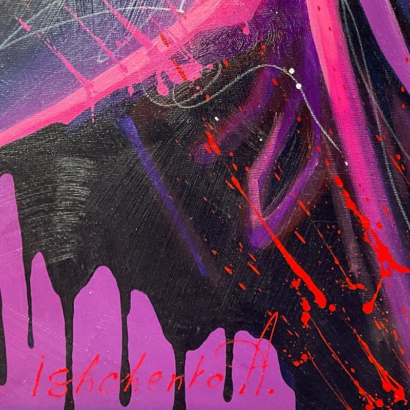 "Batman" is an original acrylic painting on canvas by Alexander Ishchenko, hand signed by the artist. Includes Letter of Authenticity. Measures approx. 36" x 36" (image).