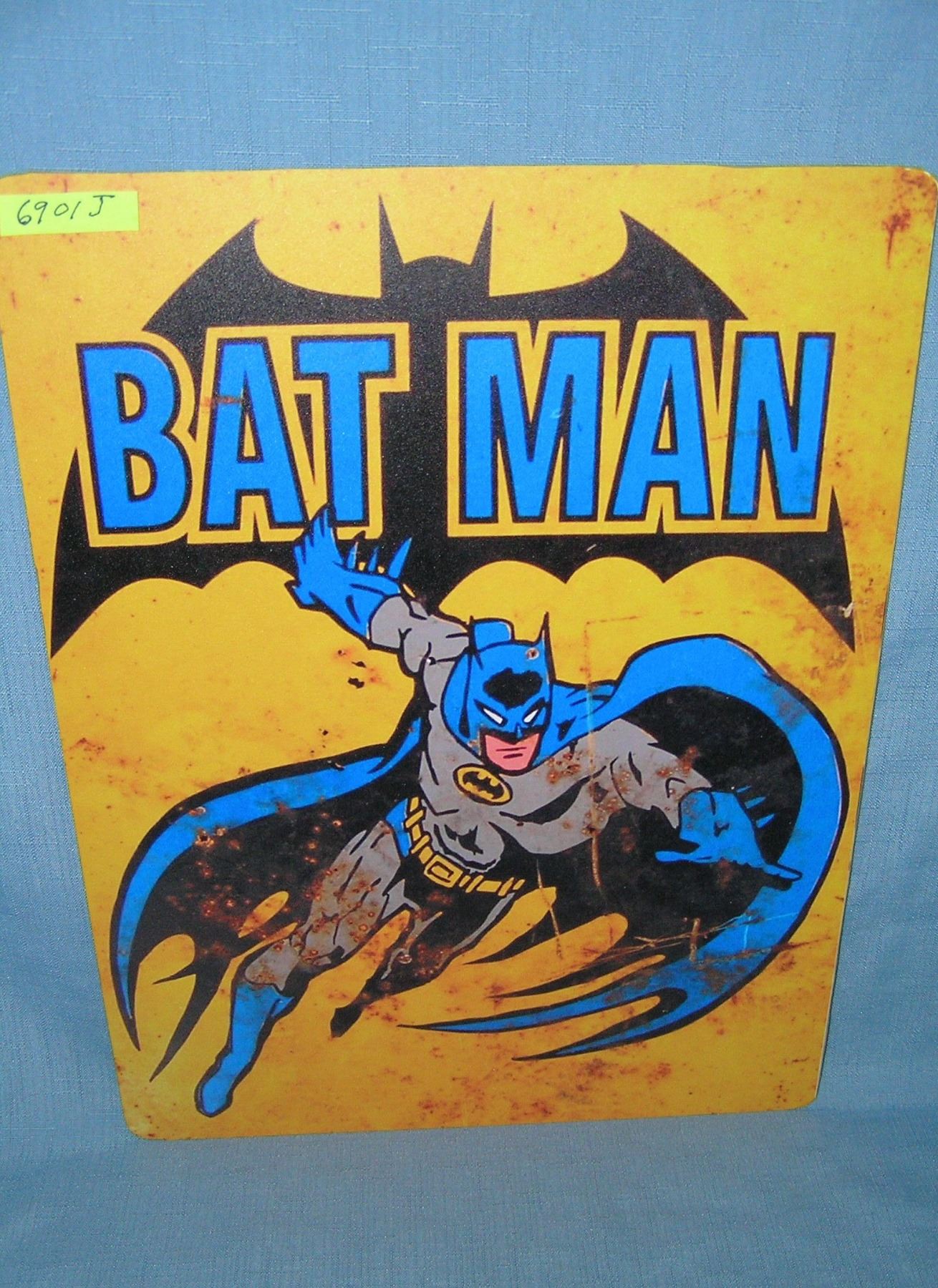 Batman retro style advertising sign printed on PVC hardboard these signs are auctioned for their decorative and display purposes 12 inches by 16 inches est. value $50.00-$60.00