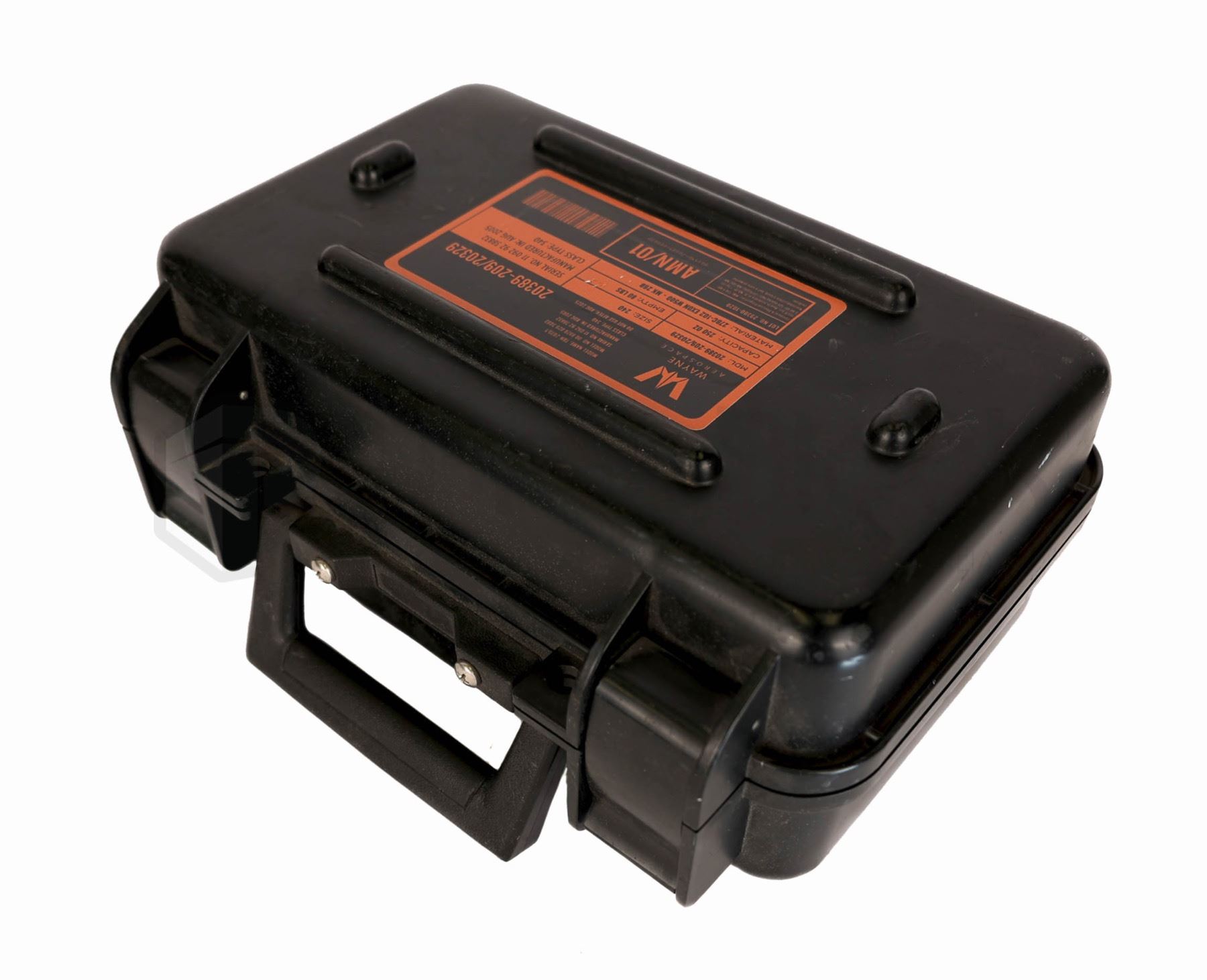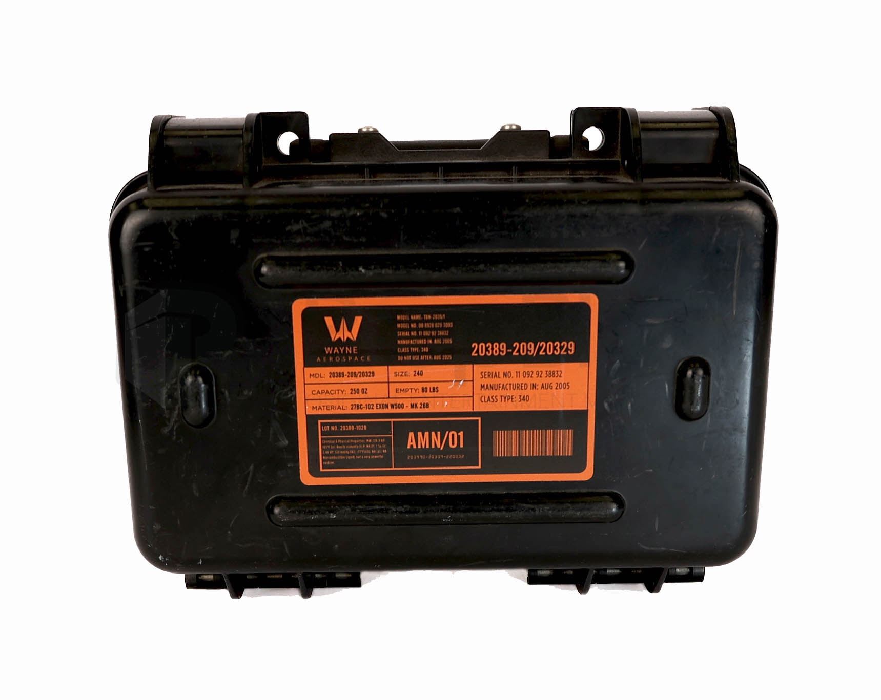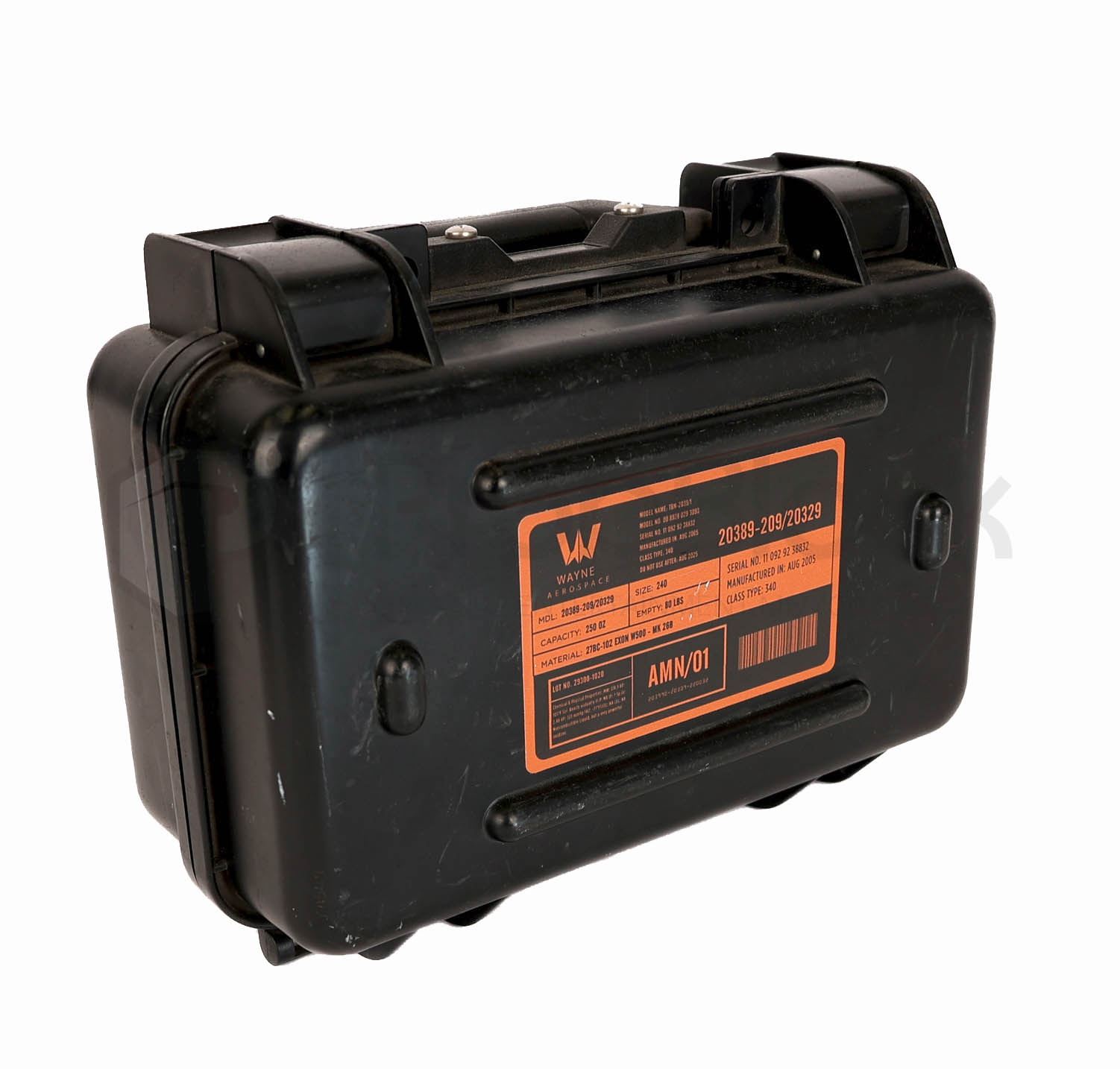 Original Wayne Industries container used in the production of the superhero ensemble film Batman vs. Superman: Dawn of Justice. It's been nearly two years since Superman's (Henry Cavill) colossal battle with Zod (Michael Shannon) devastated the city of Metropolis. The loss of life and collateral damage left many feeling angry and helpless, including crime-fighting billionaire Bruce Wayne (Ben Affleck). Convinced that Superman is now a threat to humanity, Batman embarks on a personal vendetta to end his reign on Earth, while the conniving Lex Luthor (Jesse Eisenberg) launches his own crusade against the Man of Steel. This piece was used as set dressing and is similar to the version used by Lex Luthor to store the shards of Kryptonite in the film. This container is made of plastic and features an attached handle and two large clips on the side. This piece features a custom made "Wayne Industries" decal on the side and remains in excellent, production used condition.