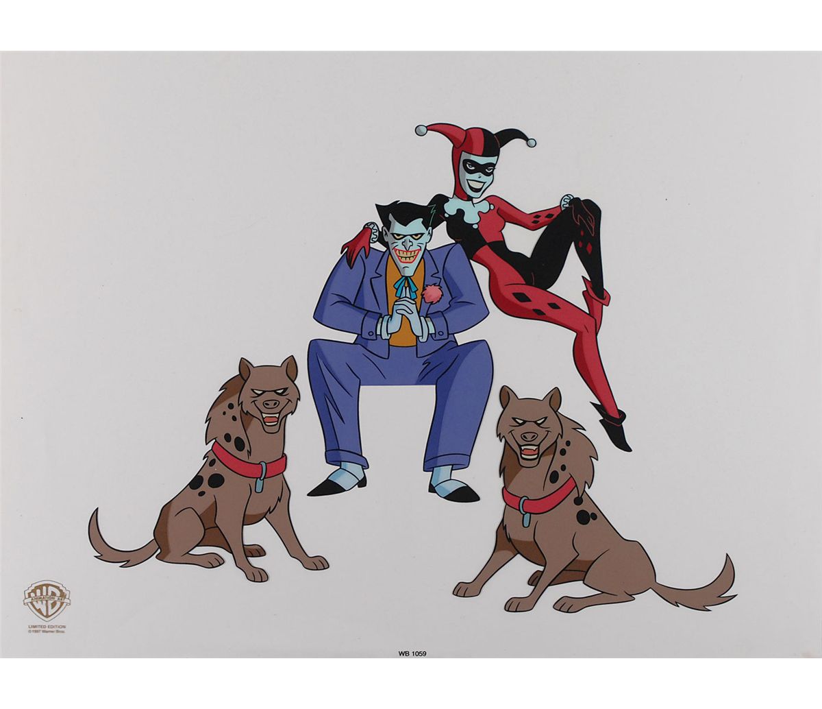 Limited edition Warner Bros. color model cel of the Joker and his friends on a 17 x 12.5 acetate sheet. Cel bears a gold Warner Bros. stamp to the lower left. In fine condition.