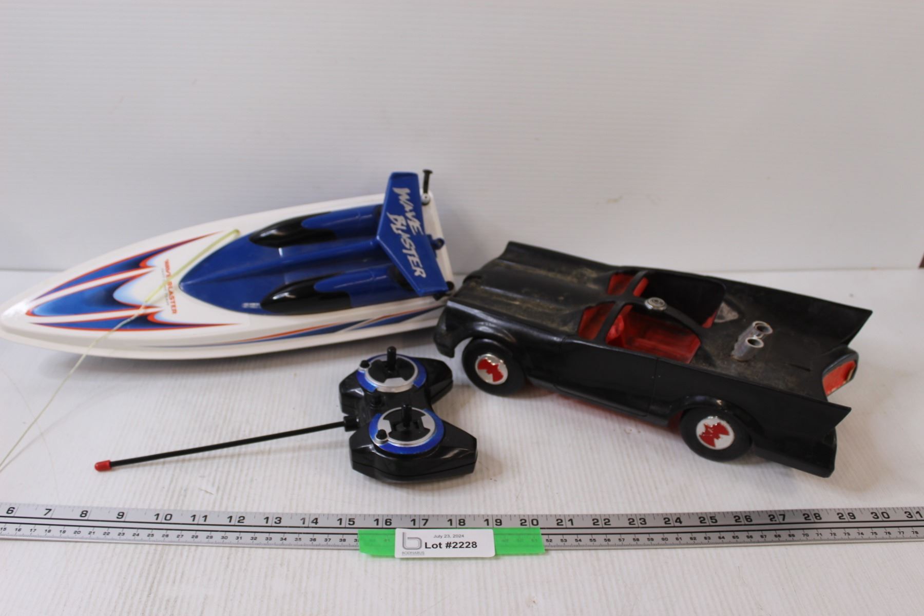 Batmobile Car (missing wheel), Remote Control Boat (untested)