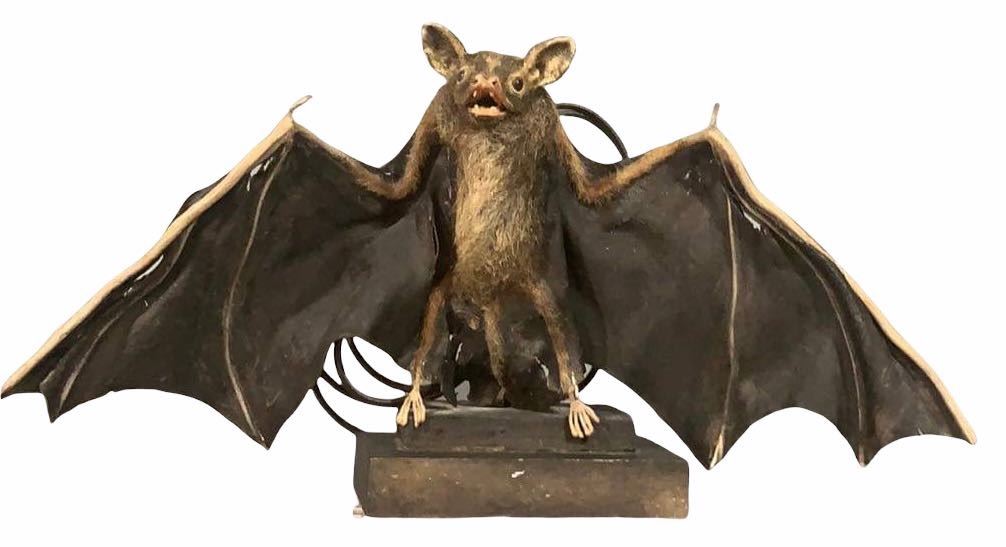 Original hero animatronic bat with cable used in the Louis Morneau directed horror film 'Bats (1999), where a hostile swarm of genetically mutated bats terrorize a local Texas town, and it is up to zoologist Sheila Casper, who teams up with town Sheriff Emmett Kimsey, to exterminate the creatures before they take more lives