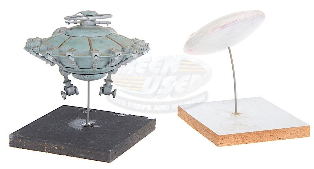 (Universal Pictures, 1987) This pair of Alien Mechanical Life-Forms are prototypes built by ILM during the production of the film. The life-forms are made of various plastic components and custom painted. One measures 4" x 5" in diameter and the second measures 1" x 4" in diameter. Rare production pieces from the popular film.