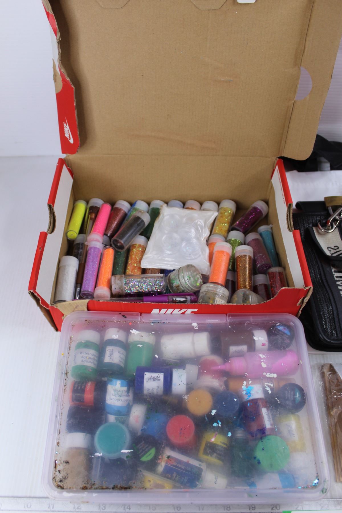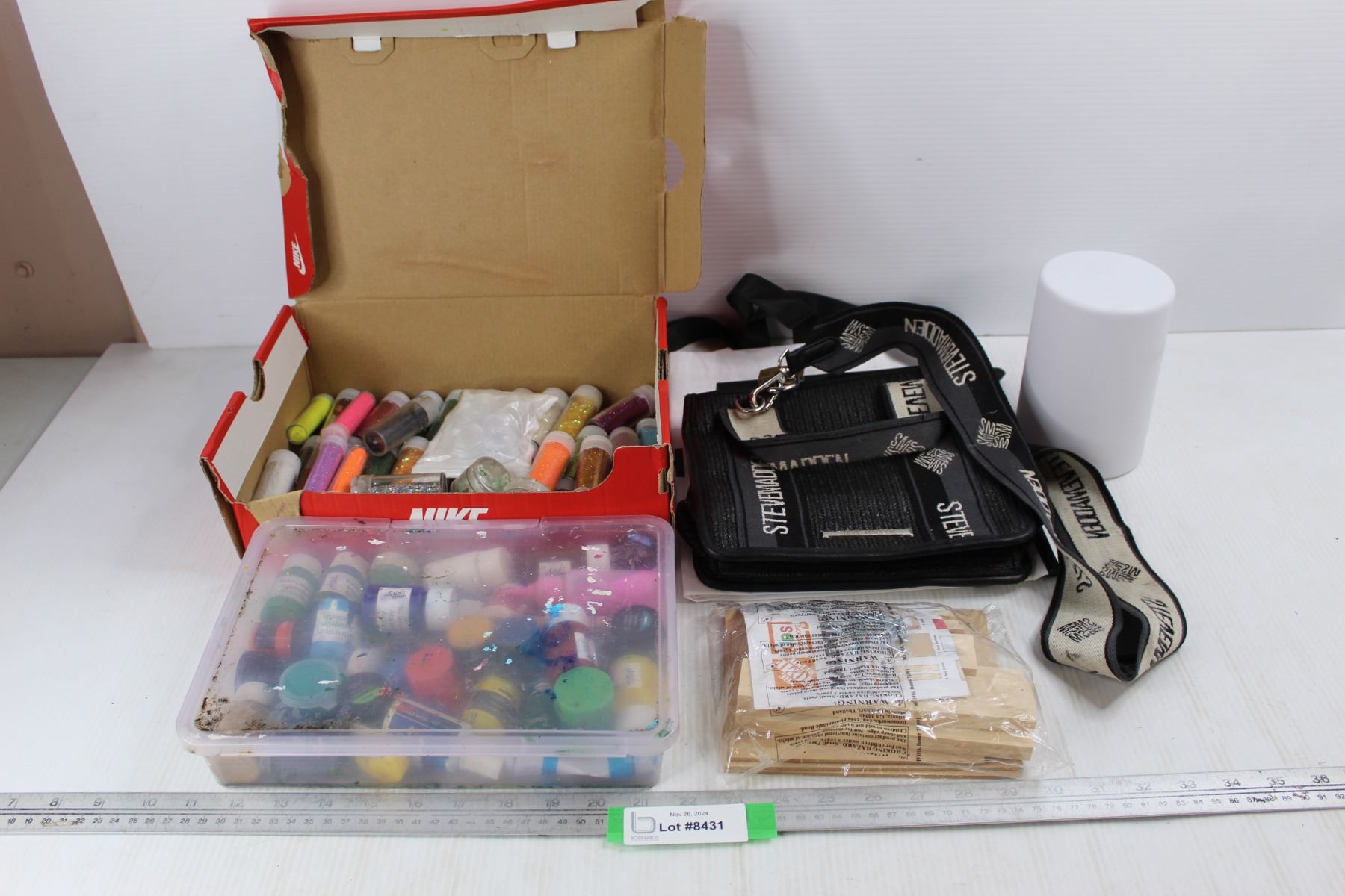 Battery Operated Color Changing Light, 6'' x 4'' , Various Containers Of Glitter, Misc.