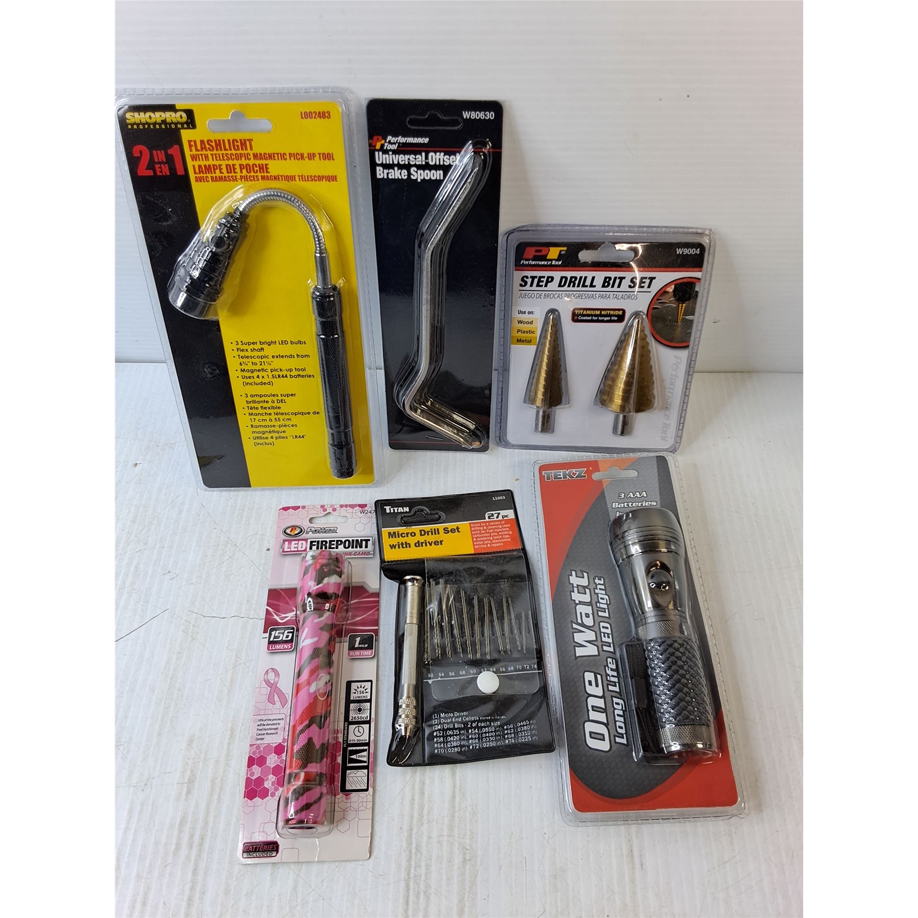 Battery Tester, Magnetic Flashlight, Step Drill Bit Set, Misc. - Sealed