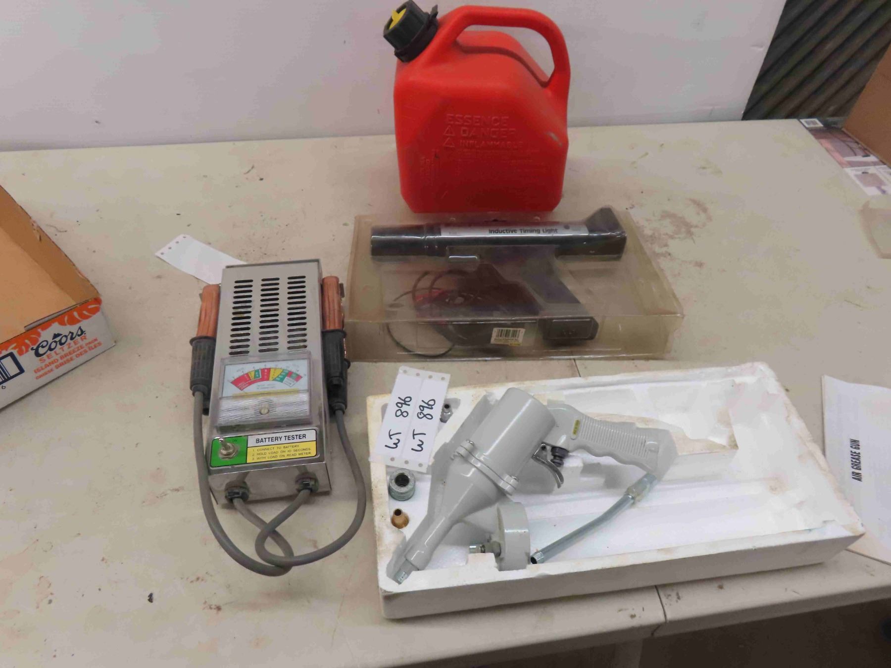 Battery Tester, Timing Gauge Equipment, Gas Can, Grease Gun
