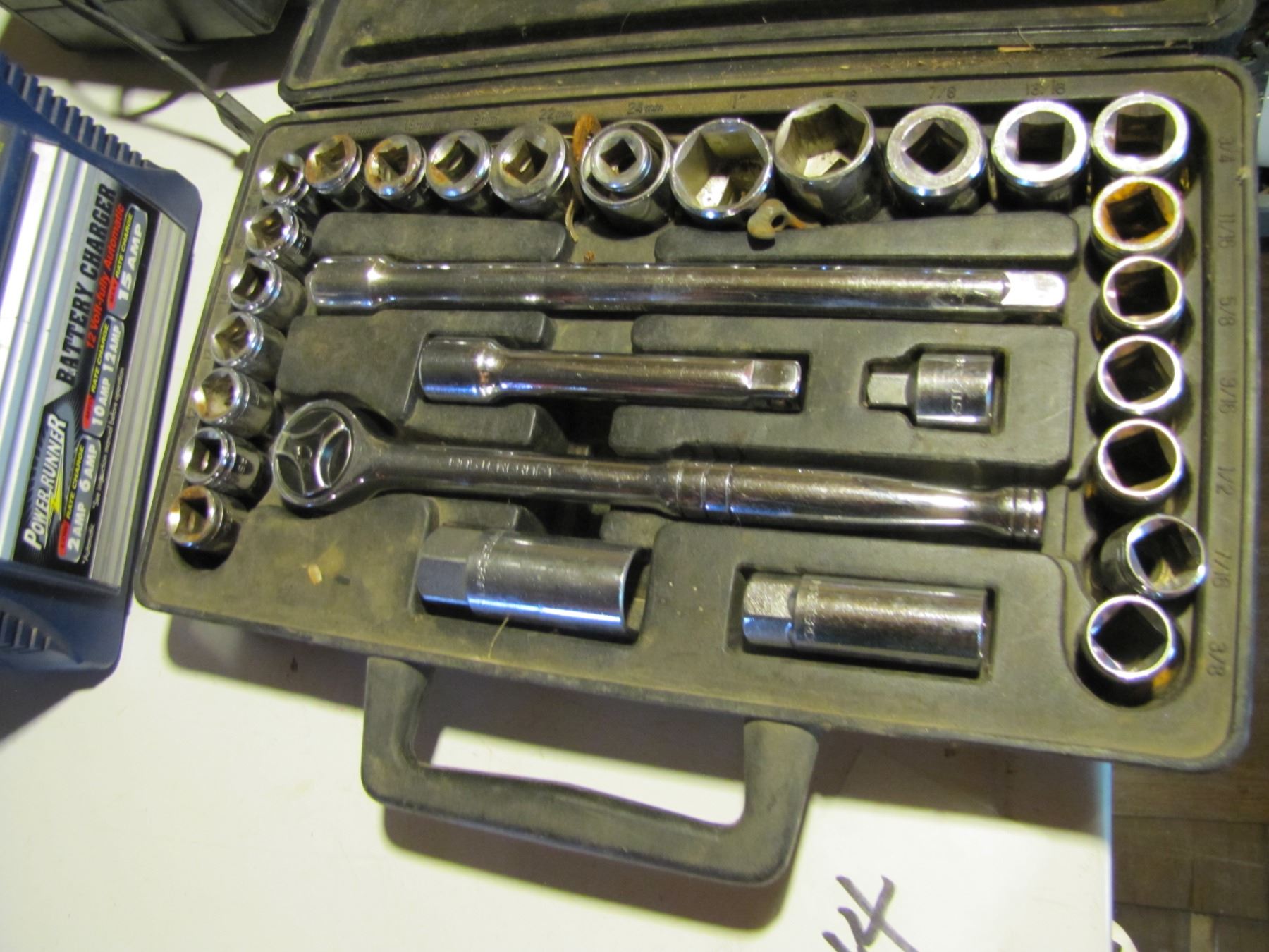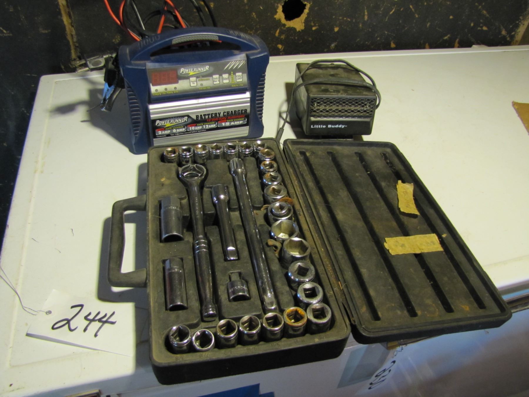 Battery charger, small car heater, socket set