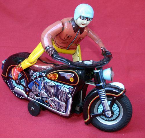 Battery operated mechanical toy motorcycle. Rider dismounts cycle and then remounts. Trade Mark Modern Toys Japan. Nice condition. Works.
