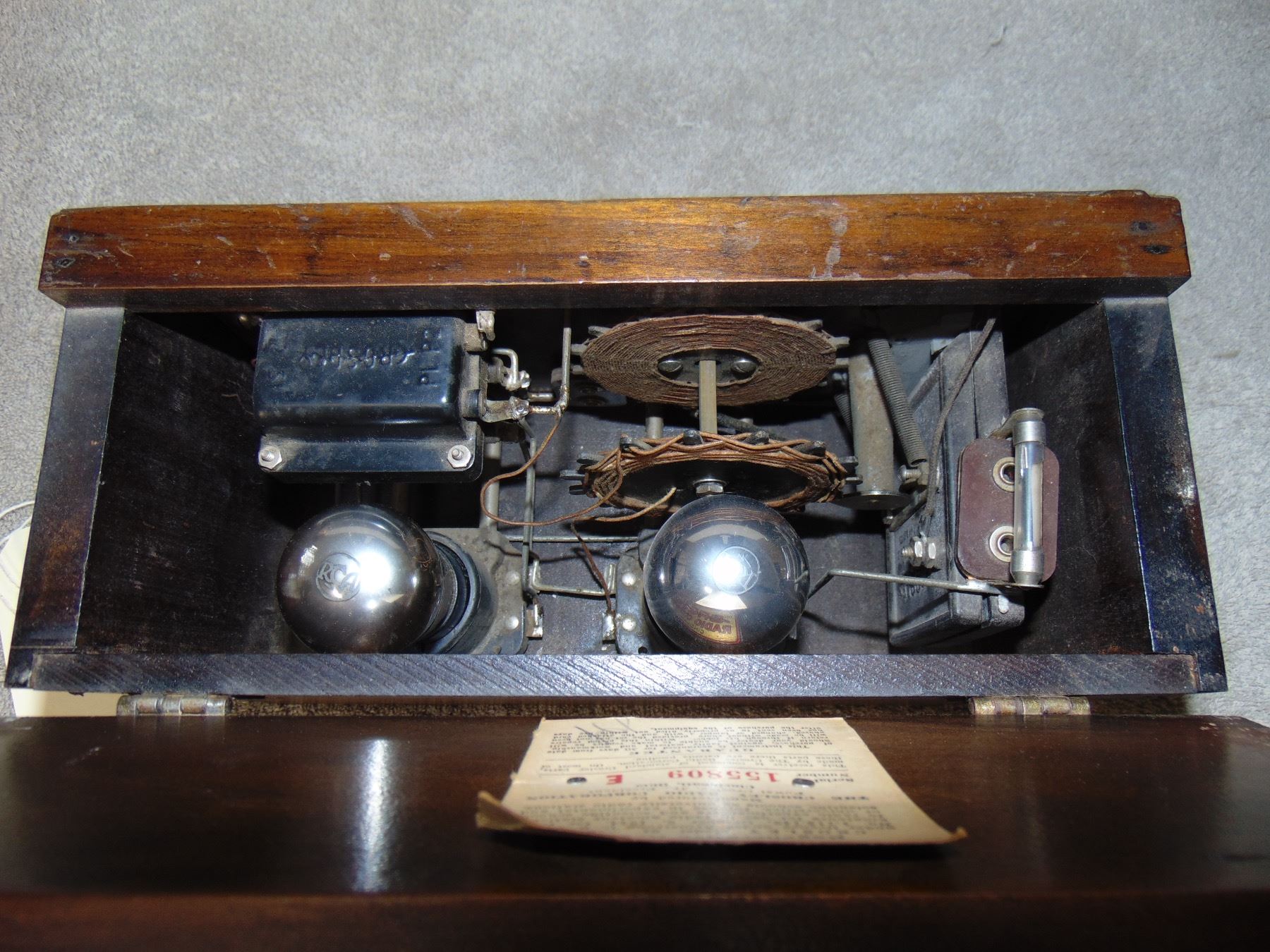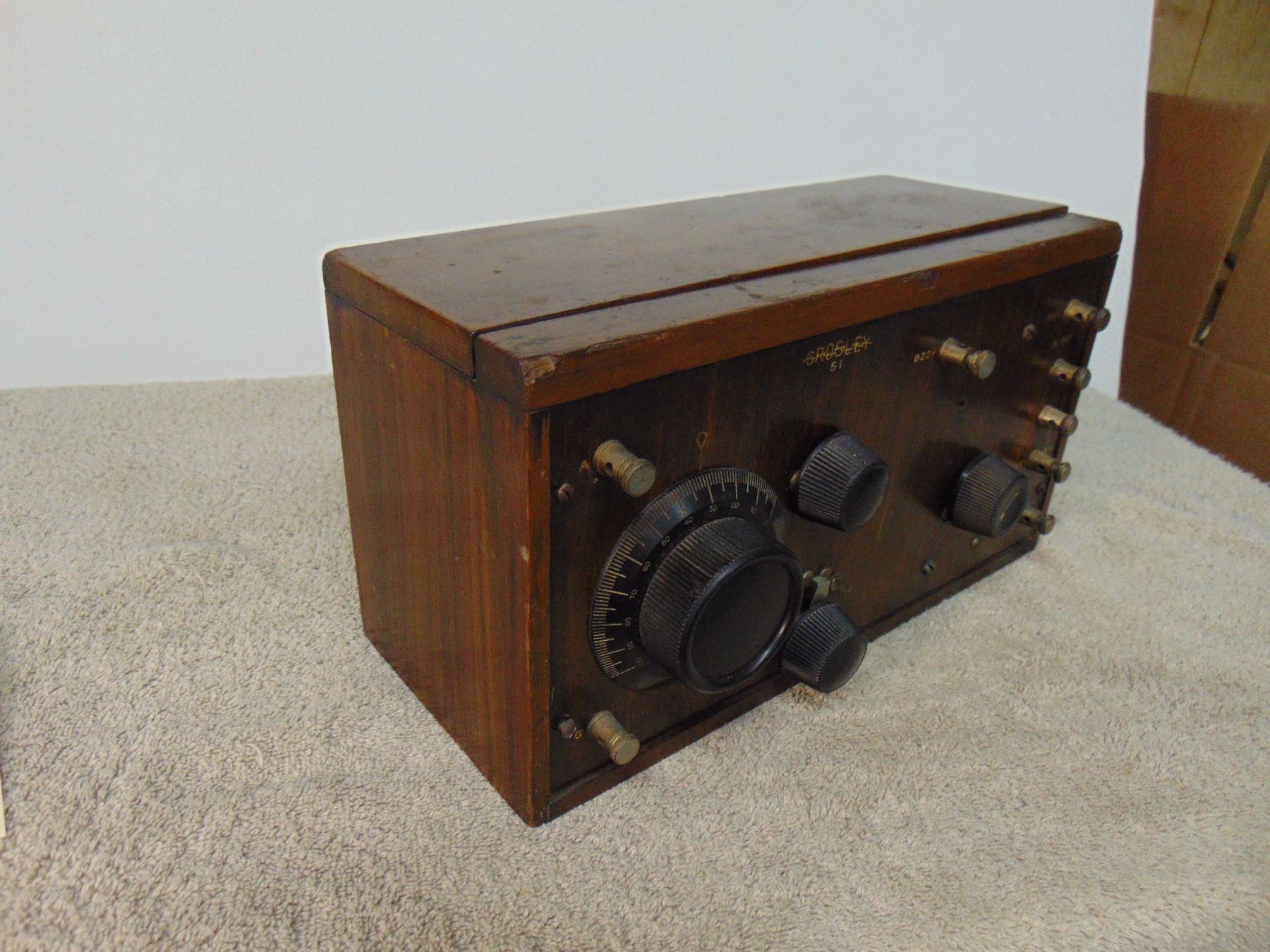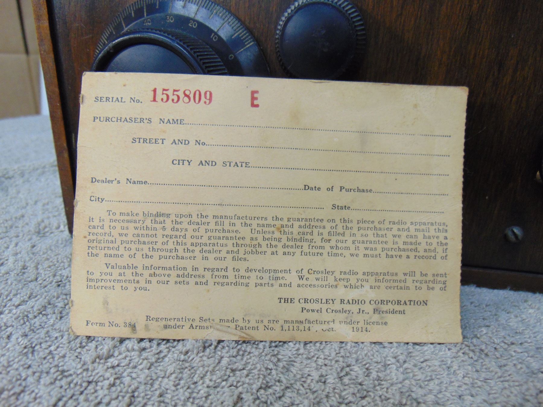 Crosley 2 tube regen receiver; model 51; includes tubes; early wood panel; original warranty card
