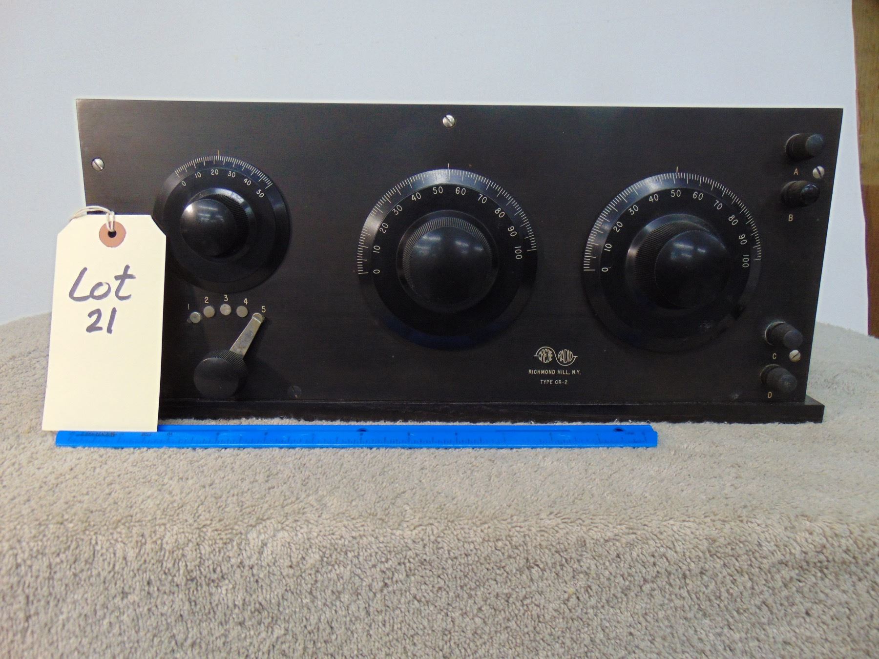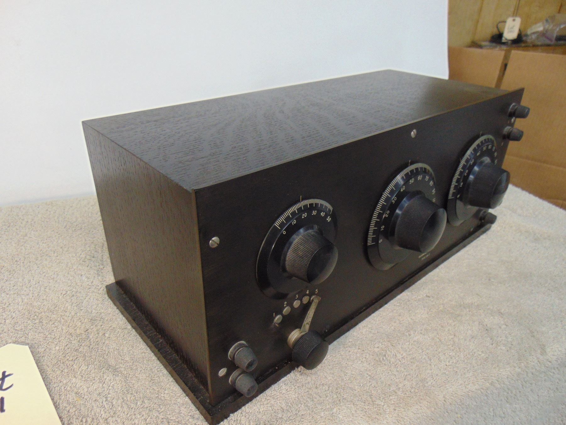 Grebe radio tuner; type CR-2; excellent condition; rare; the cabinet while excellent, may be an excellent quarter-sawn oak reproduction; however, inside is authentic and very nice