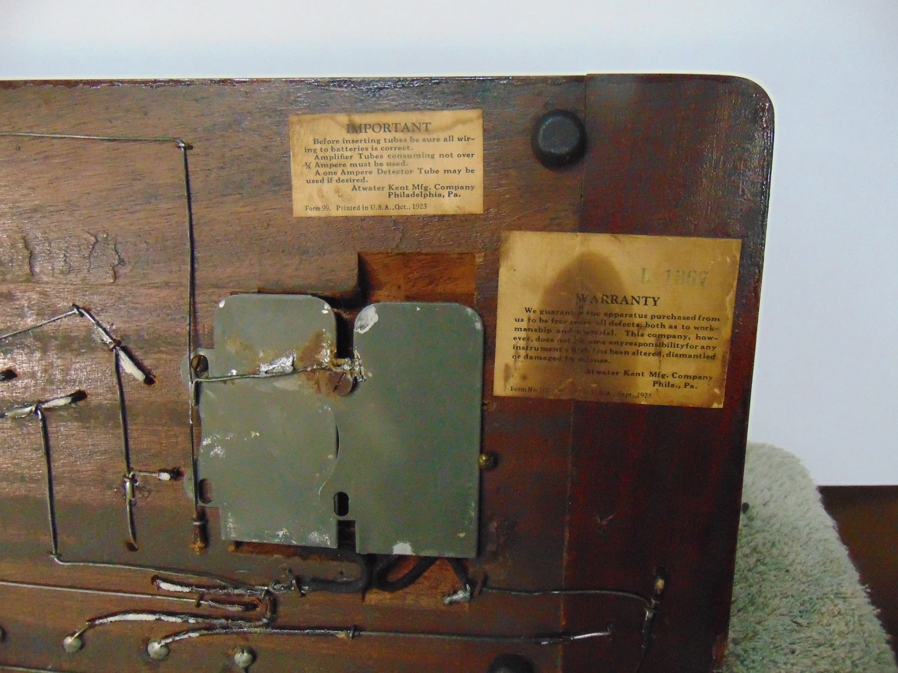 Atwater Kent breadboard; model 9 with variometers; vey nice condition; two tags; includes tubes