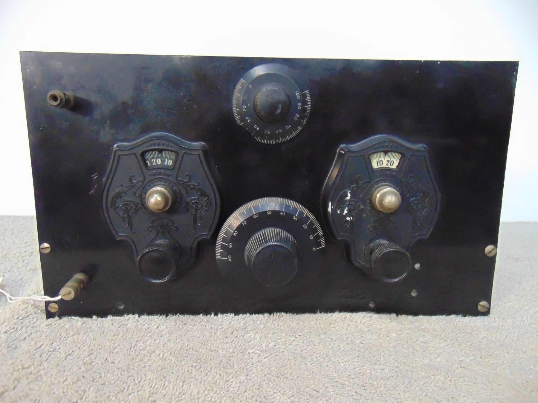 Two items: 1) one tube homebrew set; 2) homebrew crystal set, includes wood variocoupler