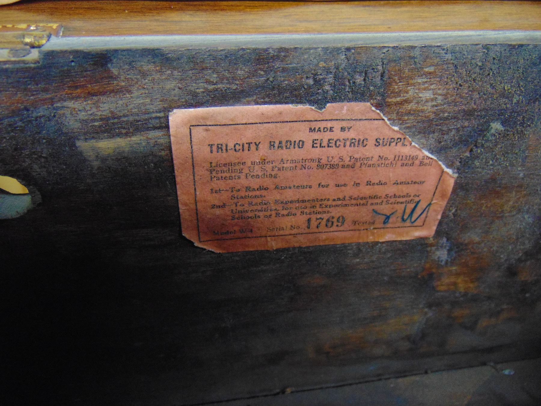 Tri-City Electric Supply one tube regen set; model W4; no tube