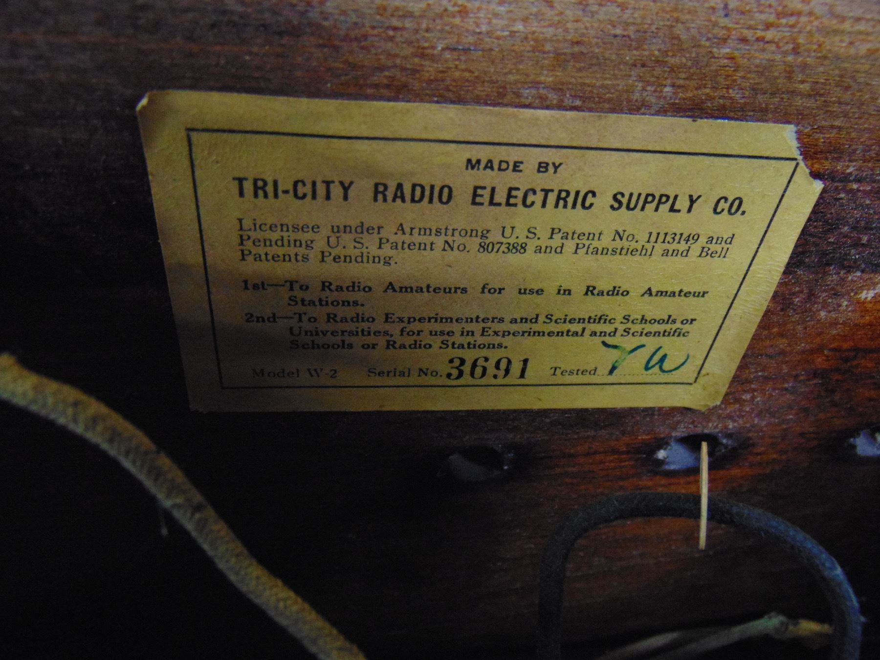 Tri-City Electric Supply one tube regen set; model W2; type 99 tube included; very nice