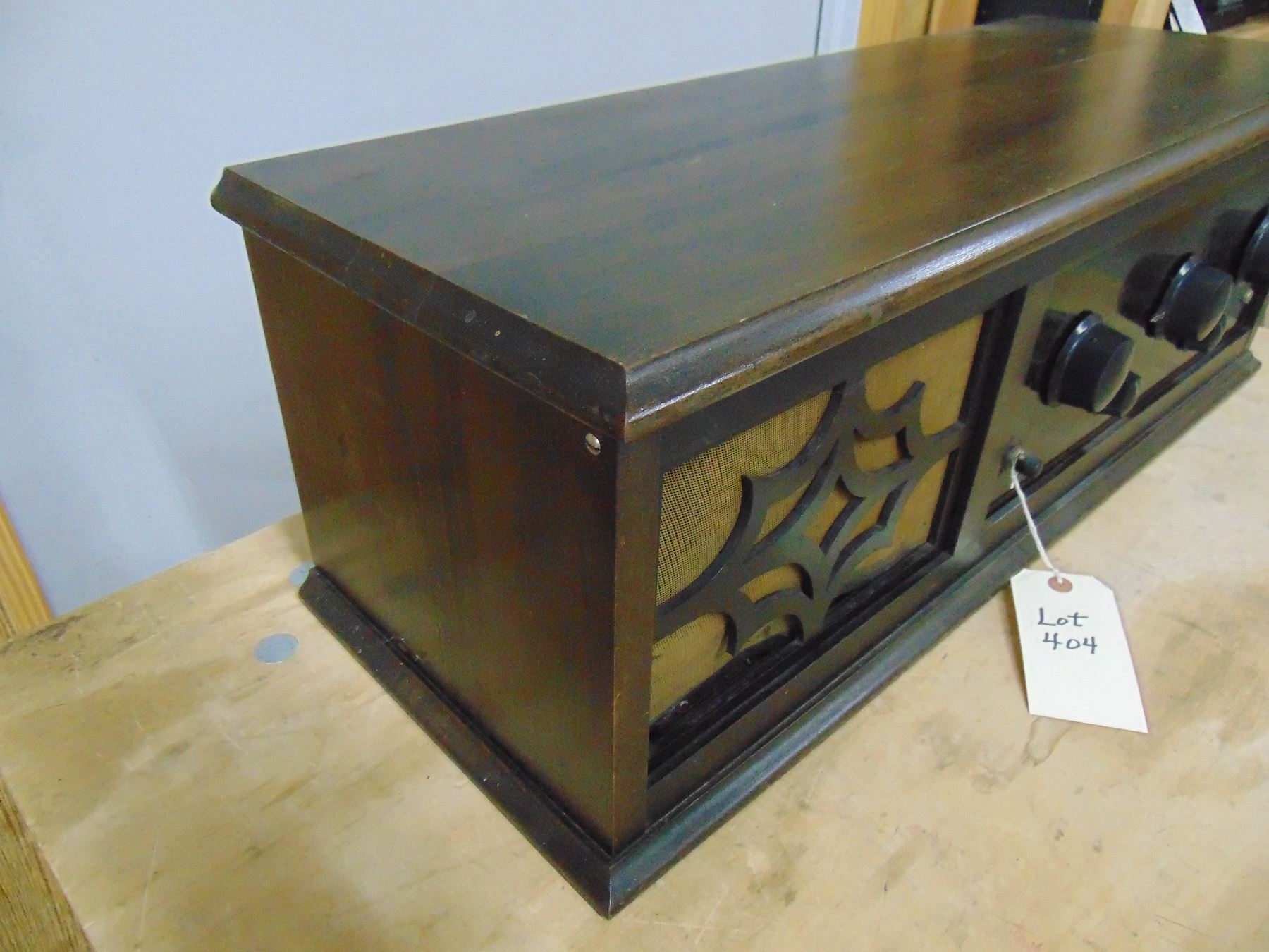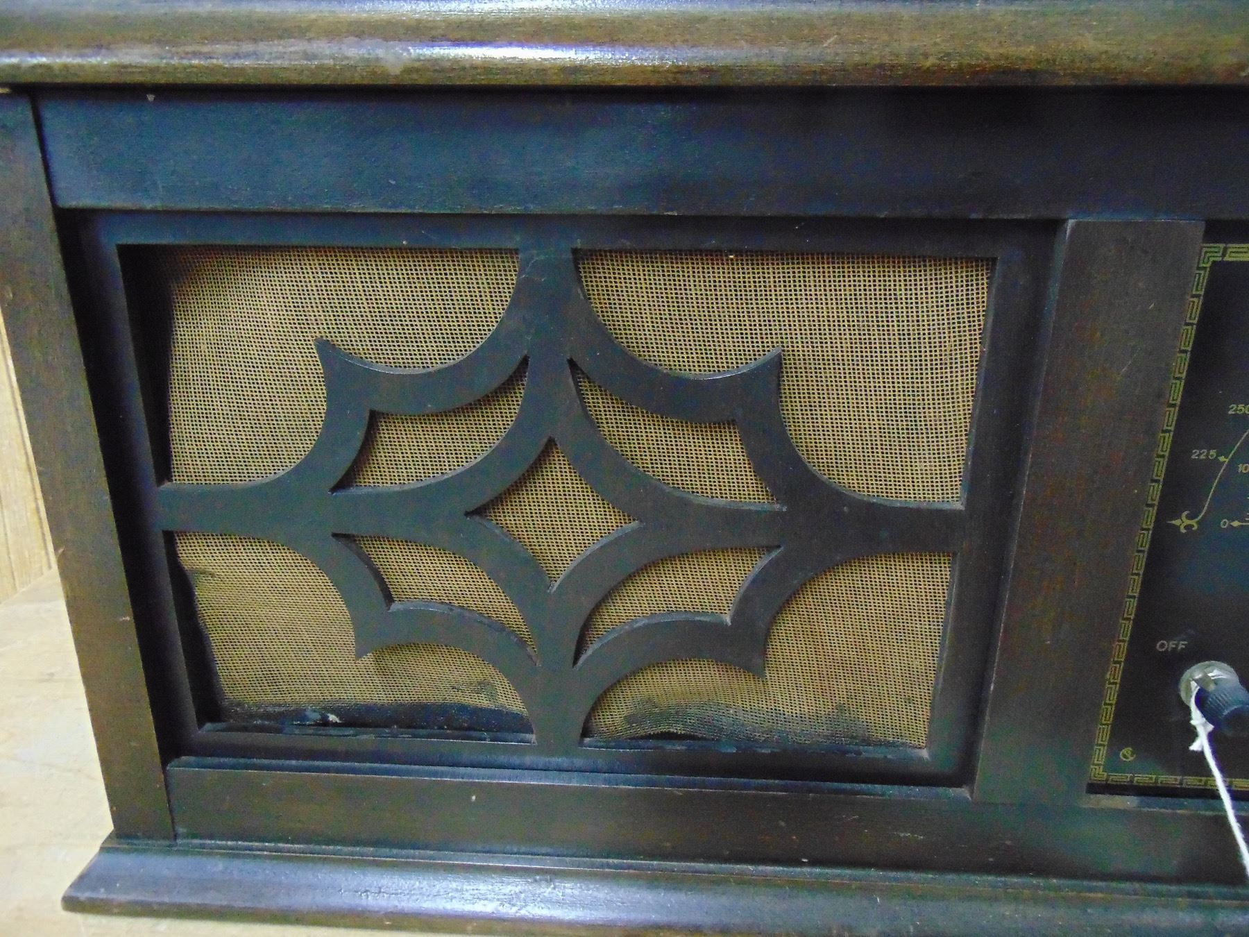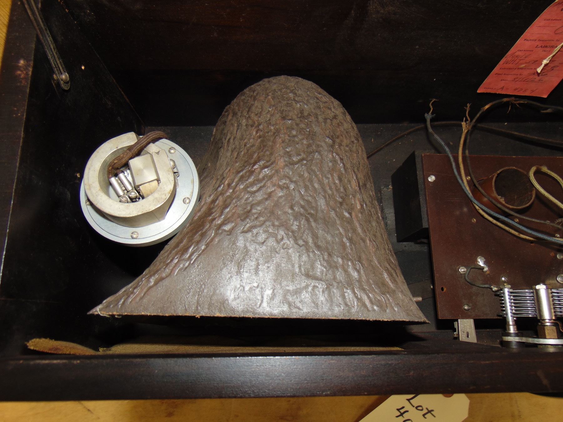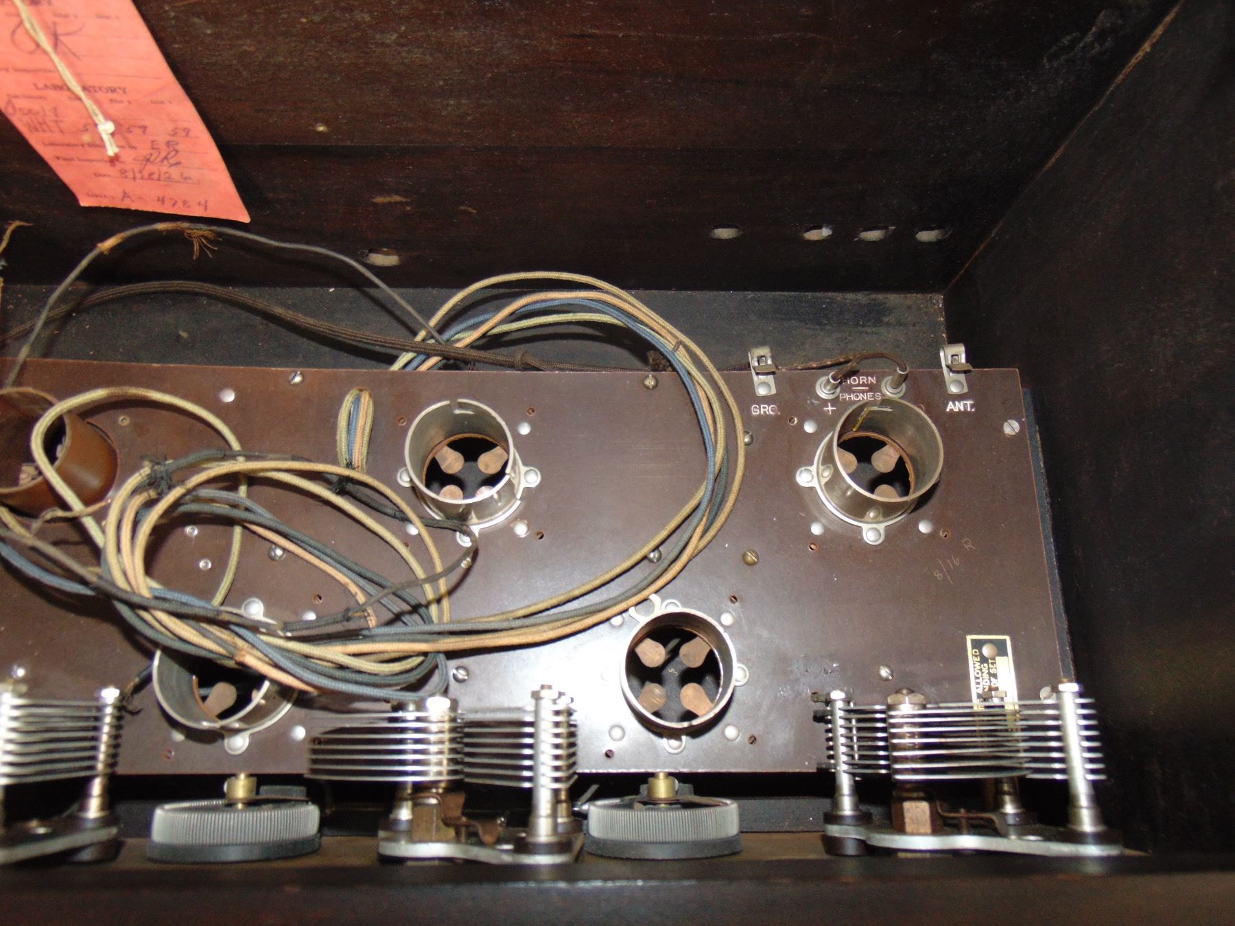 Airline 5 tube TRF "Enchanter" model with built-in horn speaker (good driver); metal front panel; no tubes; includes original wood Airline shipping crate, but not sure it is the correct crate for this radio.
