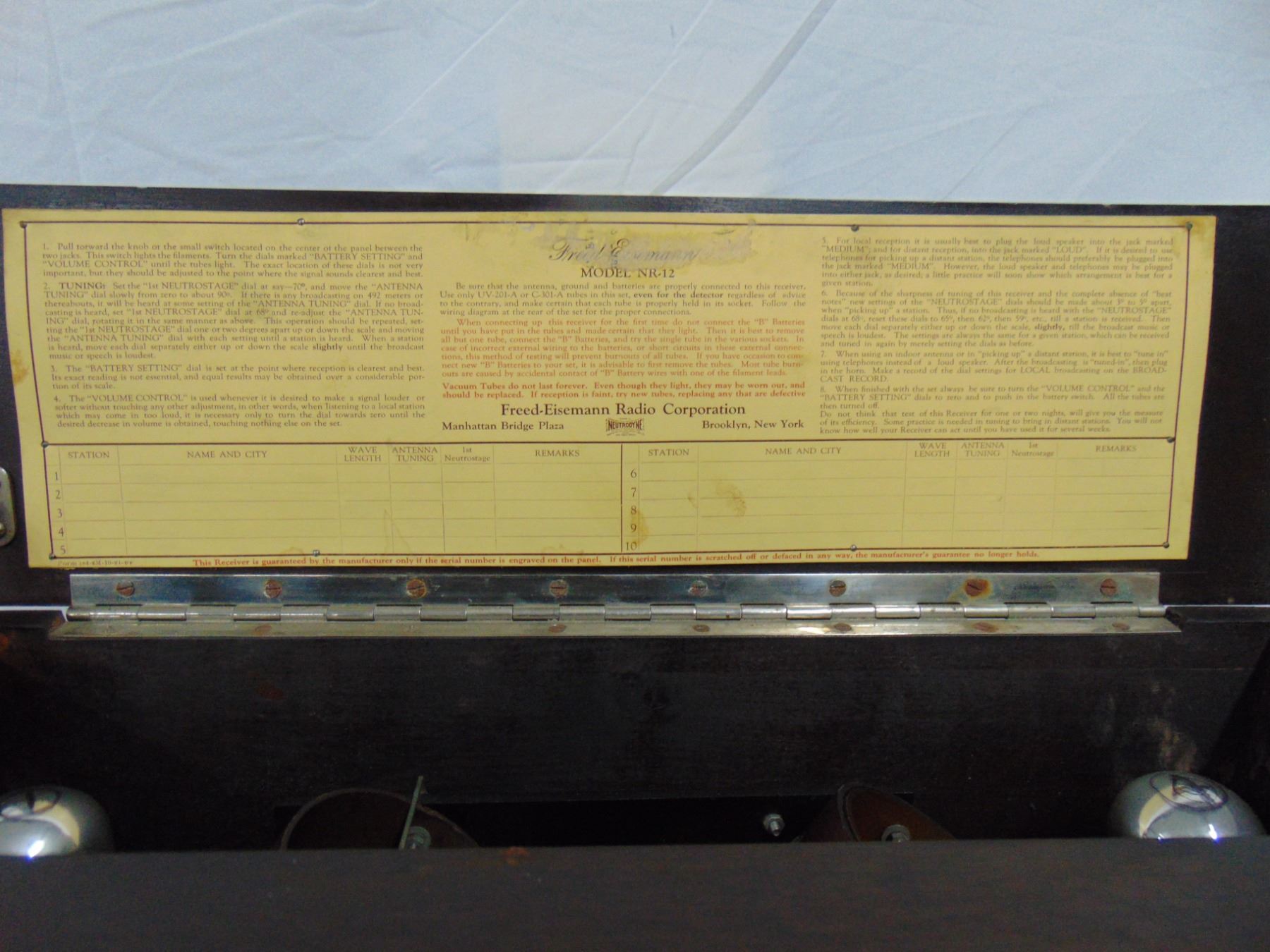 Freed-Eisemann 4 tube neutrodyne; model NR-12; works; good O1A's