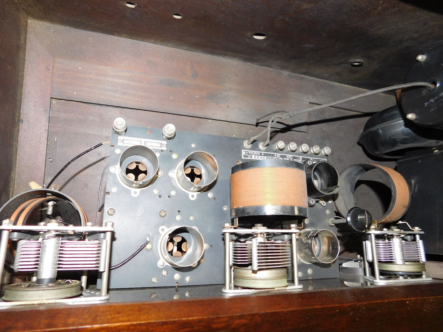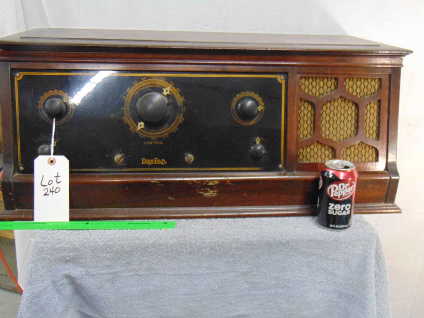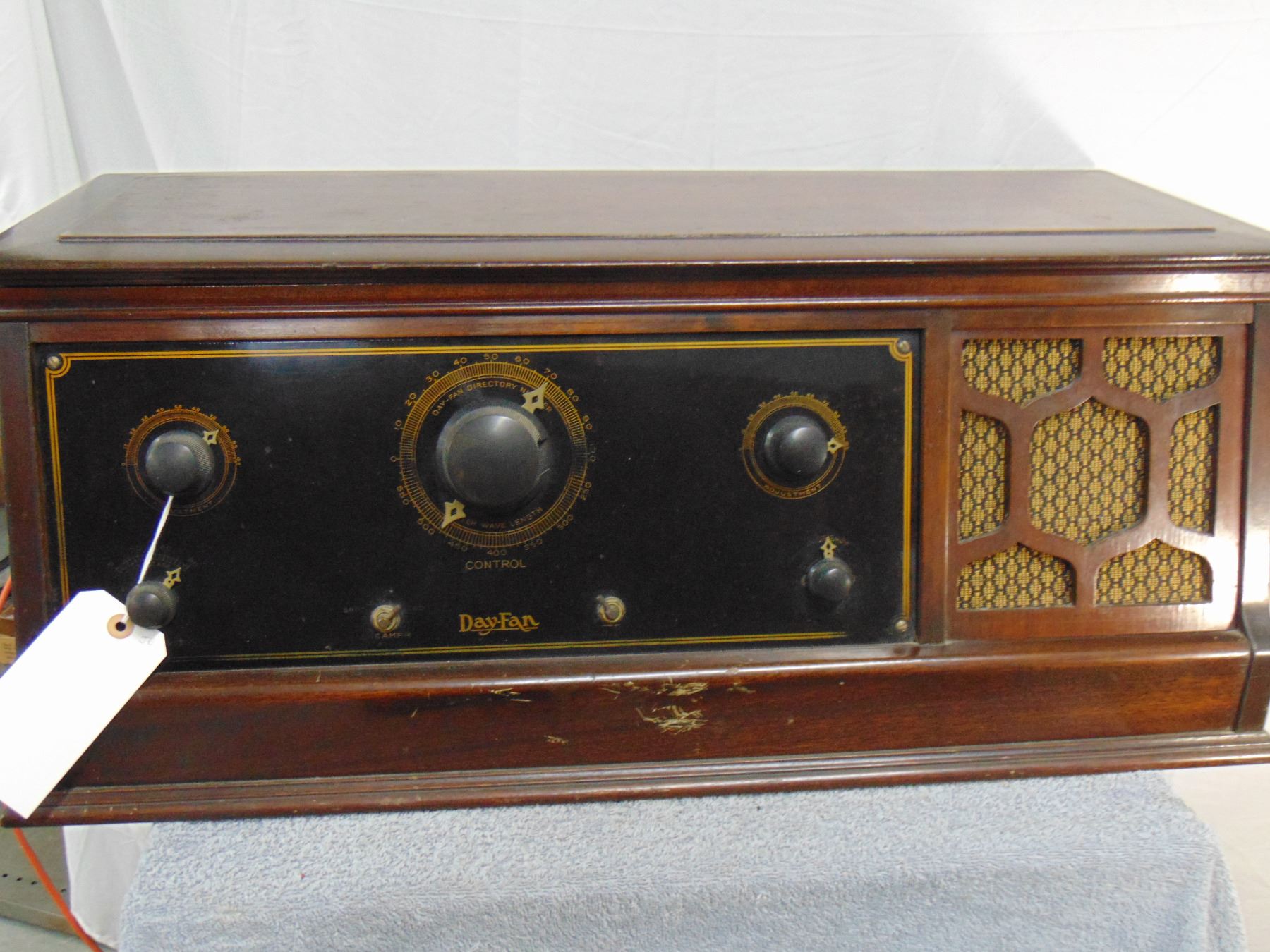Day-Fan wood TRF table set; model Day-Craft; built-in horn speaker; good driver; no tubes; nice original condition; circa 1925