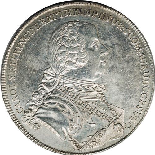 <B>Batthyani. Prince Carl Taler 1764, </B></I>KM2, Davenport 1182, sharply struck XF, lightly cleaned with some tiny contact marks in the obverse fields. Very scarce type and location.<BR><I>From the Blue Ridge Collection</B></I><BR><BR><b>Shipping:</b> Coin/Currency (<a target="_blank" href="http://www.heritageauctions.com/common/shipping.php">view shipping information</a>)