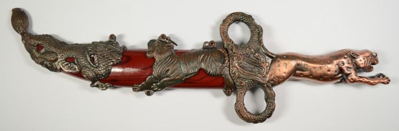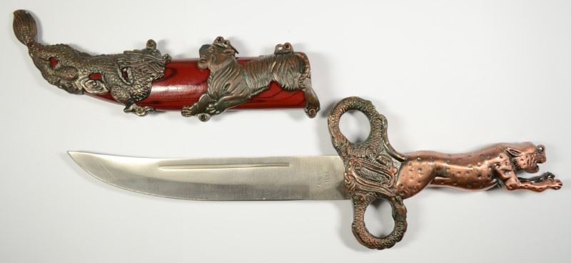 Battle Dagger with Leopard handle. Tiger and Dragon on Sheath. 7" Stainless Steel Blade. EST:$40-$50