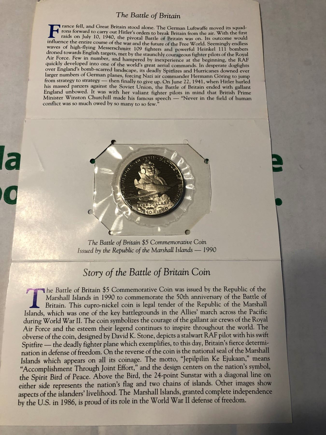 Battle of Britain Marshall Islands 5 Dollar Commemorative Coin in Original Package