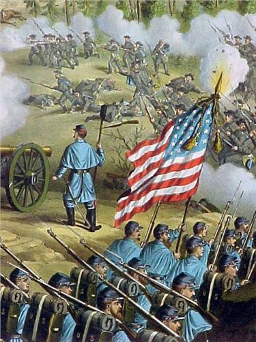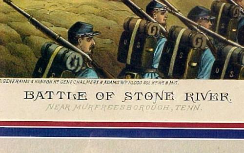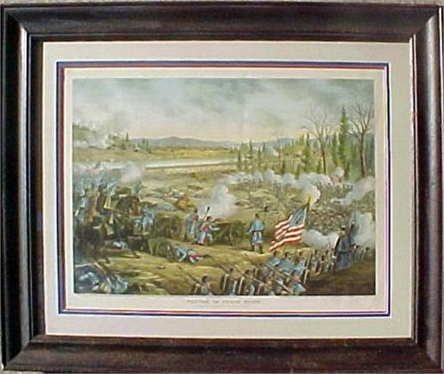 Battle of Stone River lithograph; copyrighted 1891 by Kurz and Allison Art Publishers Chicago, Ill; image measures 20" x 26" framed (no visible defects)
