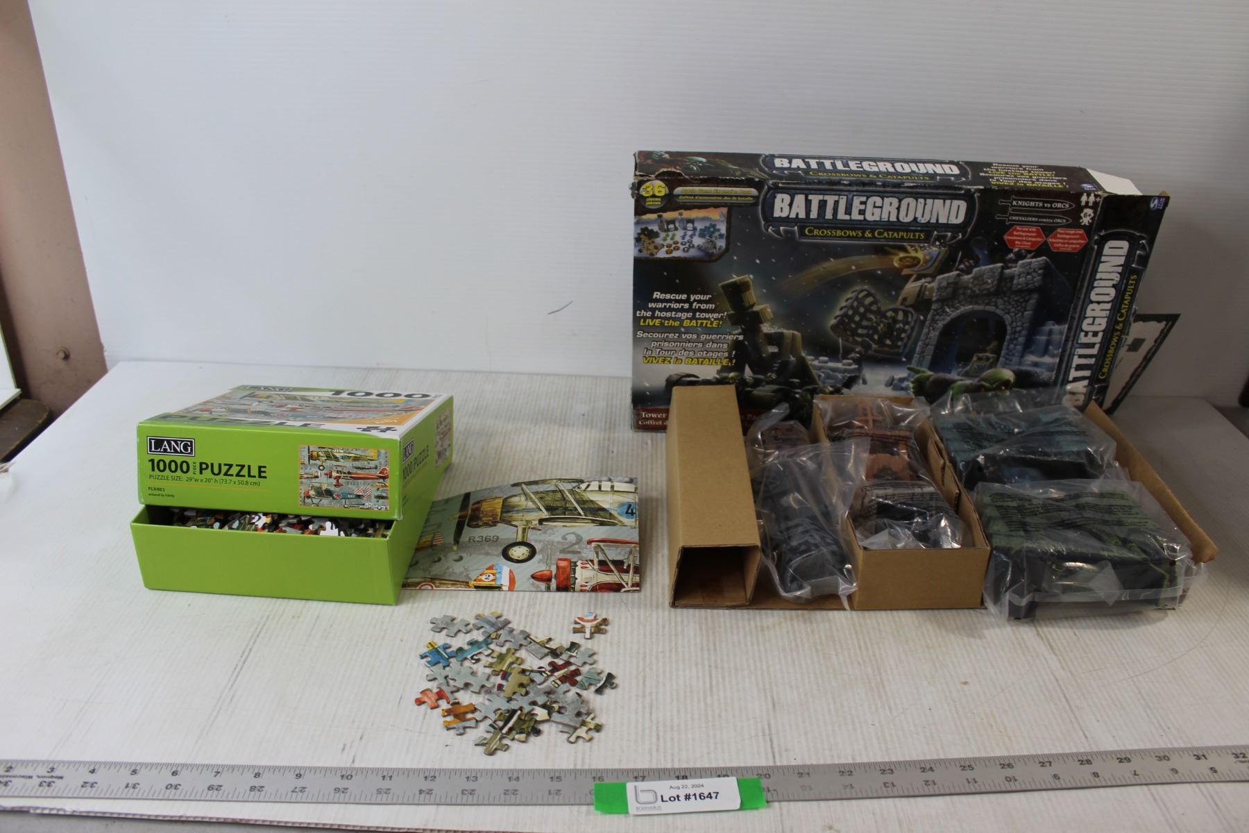 Battleground Crossbows and Catapults Board Game, Lang 1000 Piece Plane Puzzle - As Is