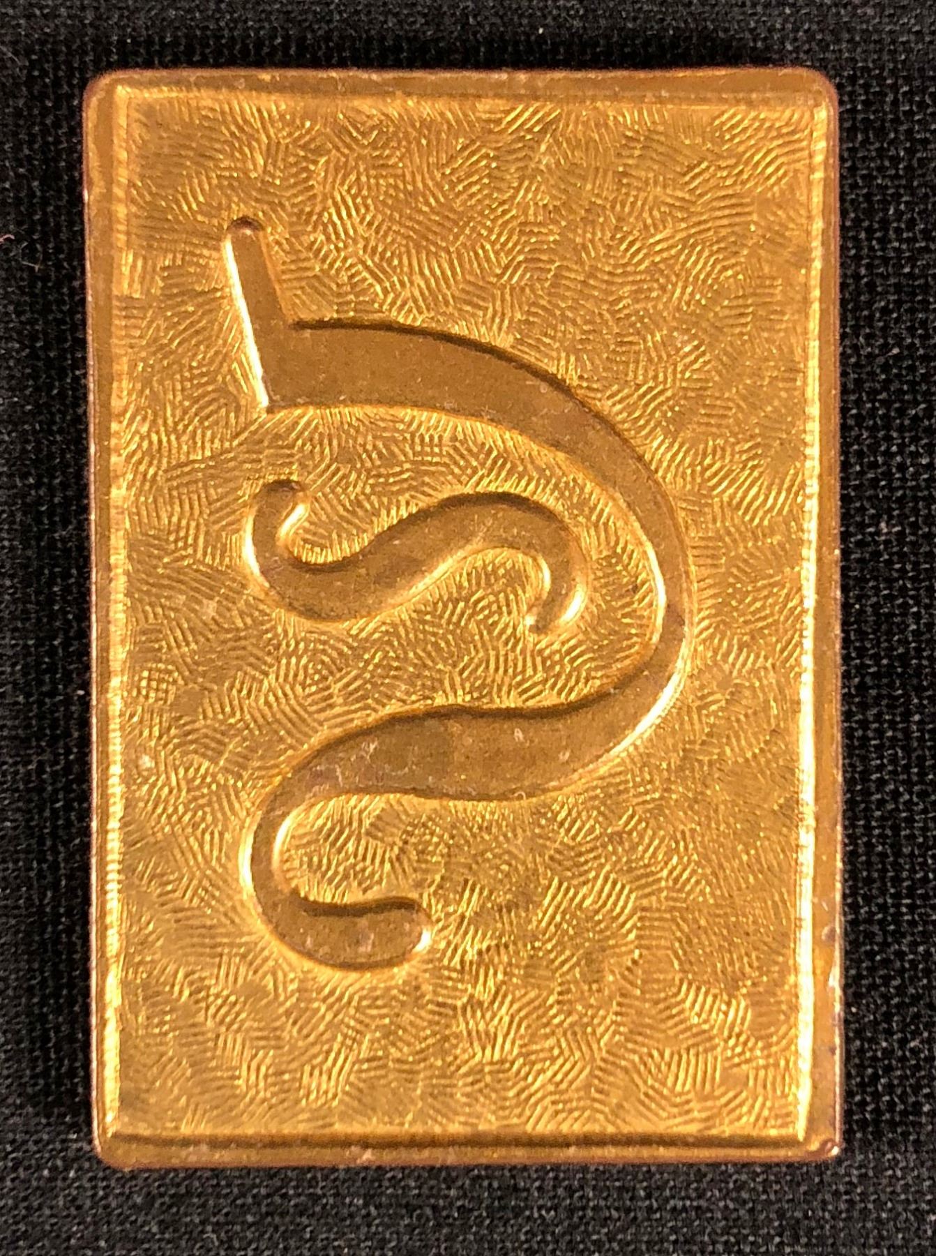 "S" symbol on one side and the Galactica insignia on the opposite. Made of metal and measures 1 ½" x 1".