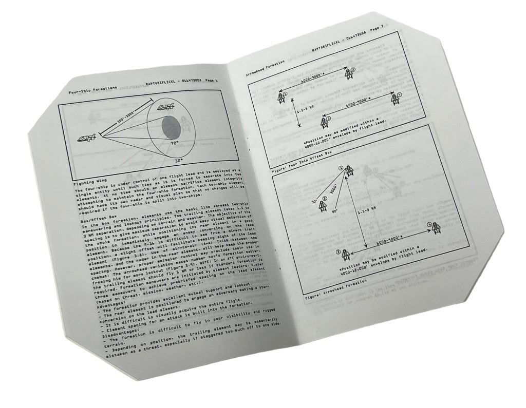 Original flight manual for a Colonial Raptor used in the science fiction television series 'Battlestar Galactica' (2004 - 2009) where, when an old enemy, the Cylons, resurface and obliterate the 12 colonies, the crew of the aged Galactica protect a small civilian fleet - the last of humanity - as they journey toward the fabled 13th colony, Earth.