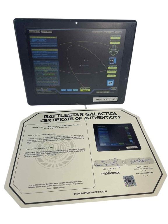 Original Demetrius telecom station used in the science fiction television series 'Battlestar Galactica' (2004 - 2009) where, when an old enemy, the Cylons, resurface and obliterate the 12 colonies, the crew of the aged Galactica protect a small civilian fleet - the last of humanity - as they journey toward the fabled 13th colony, Earth.